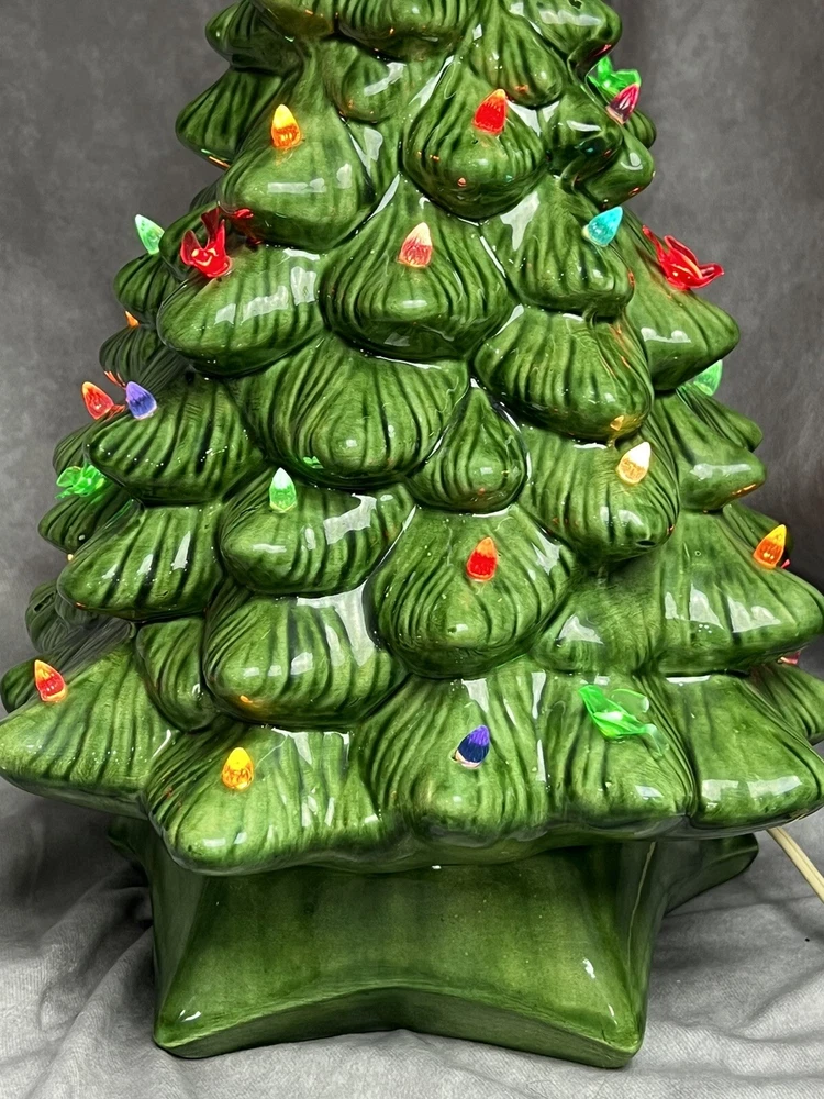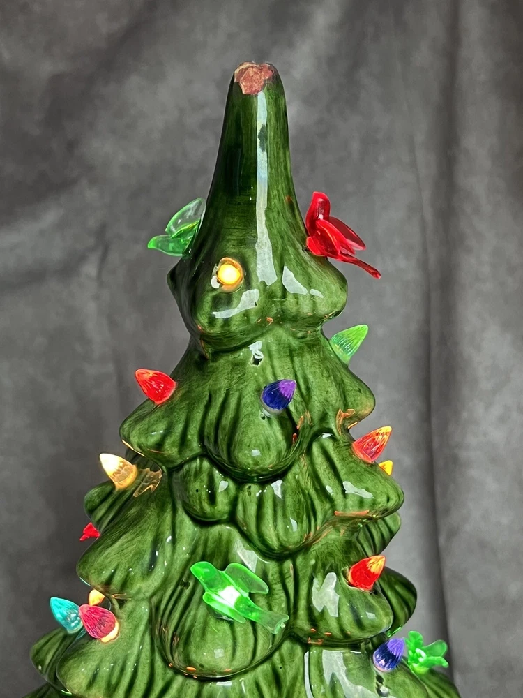 Please see photos carefully for details. No star and there are some missing lights. I did not notice any major chips or cracks however, please see photos carefully for details.