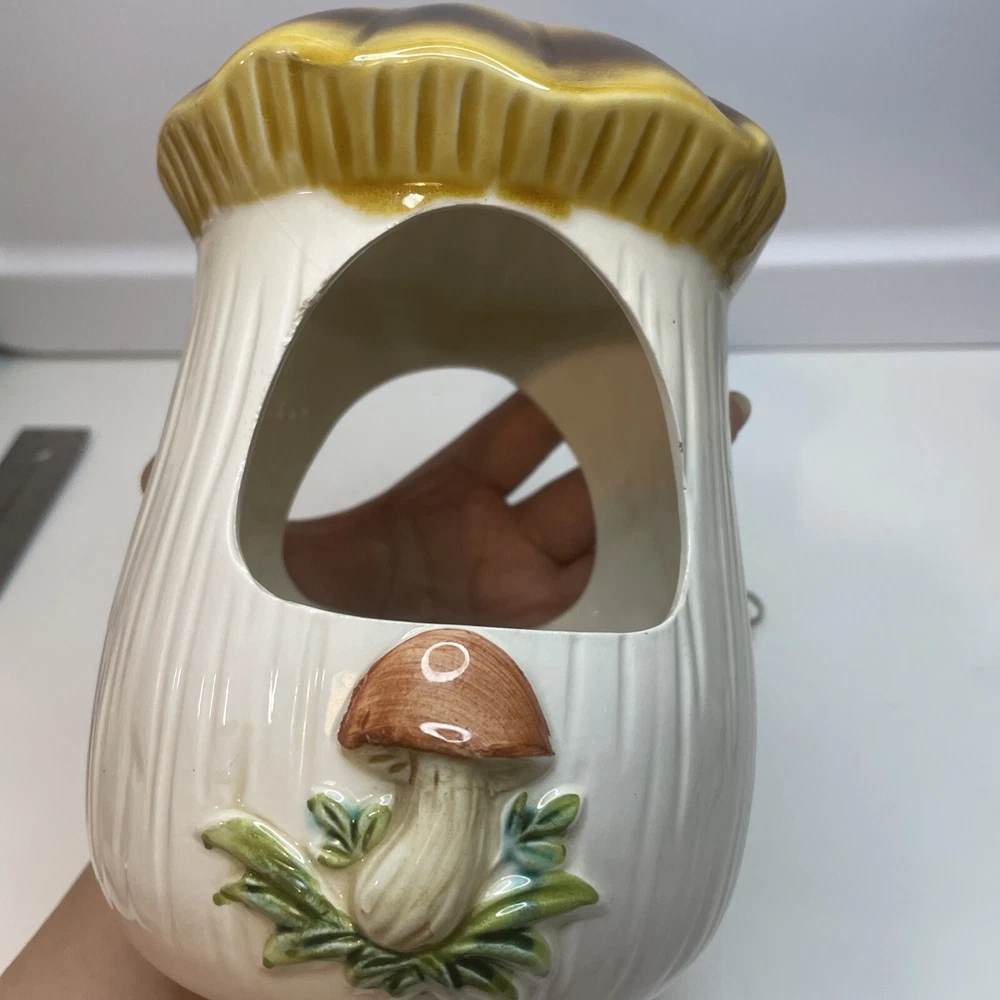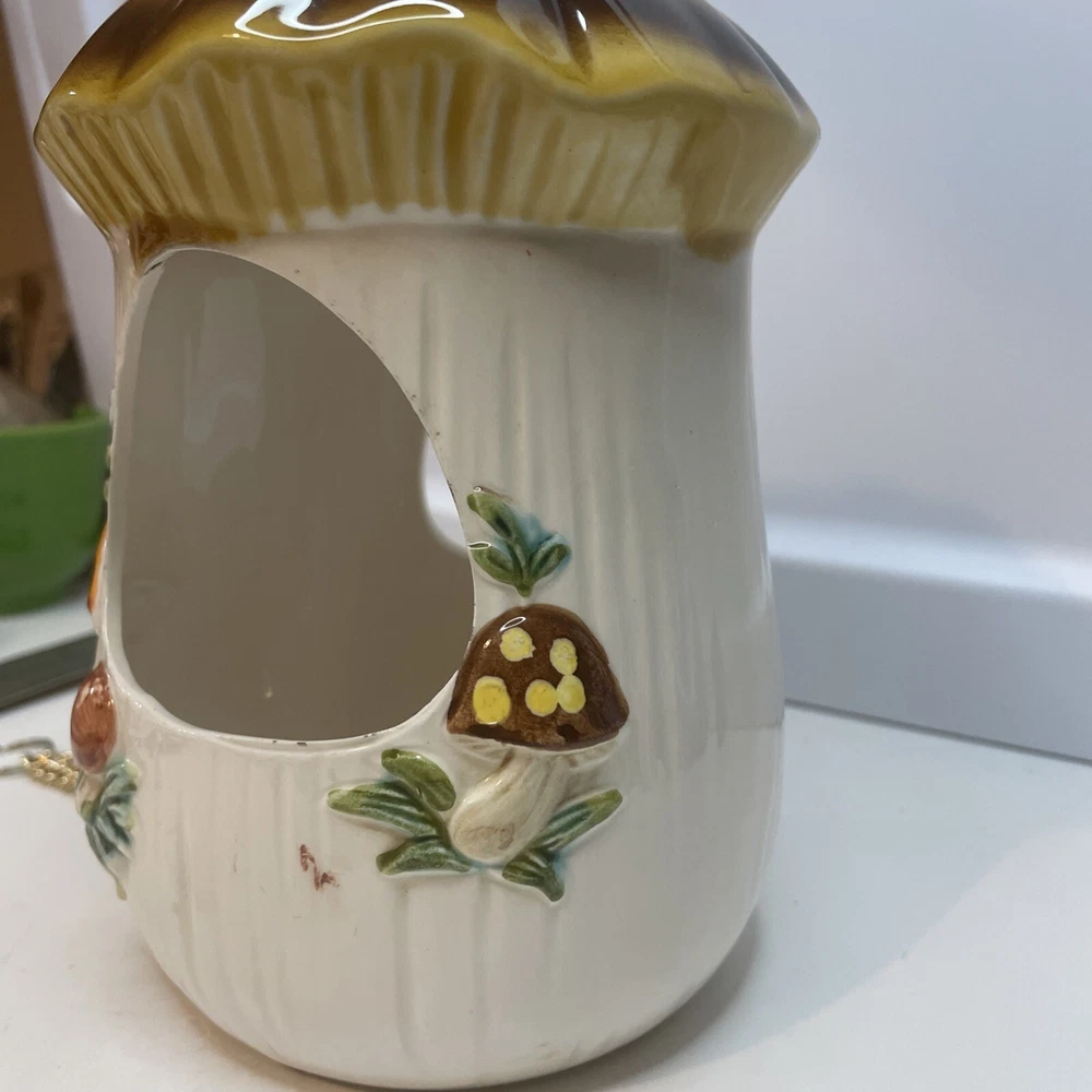 Vtg 1976 Sears Roebuck Co Merry Mushroom Hanging Planter/Bird Feeder Got little bit crazing and flea bites and dusty Overall good condition