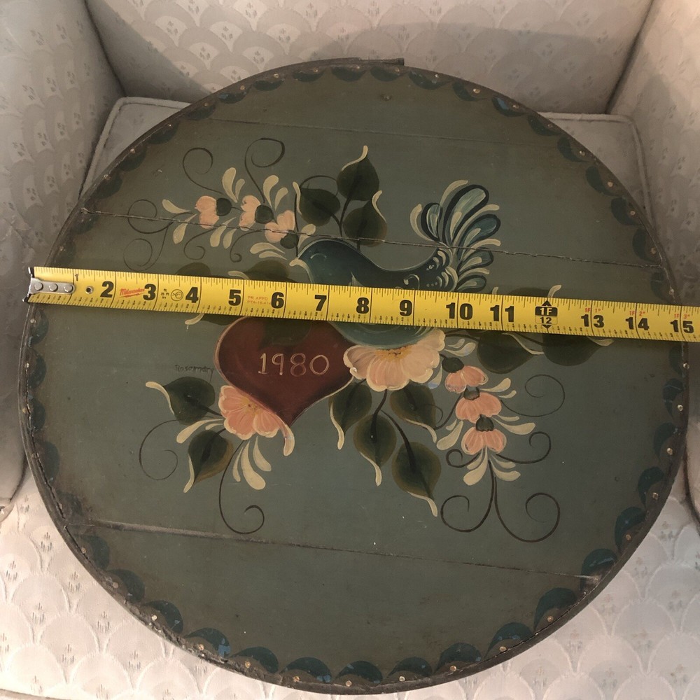 Vtg 1980 Large 15" Round Toll Hand-Painted Decorative Box