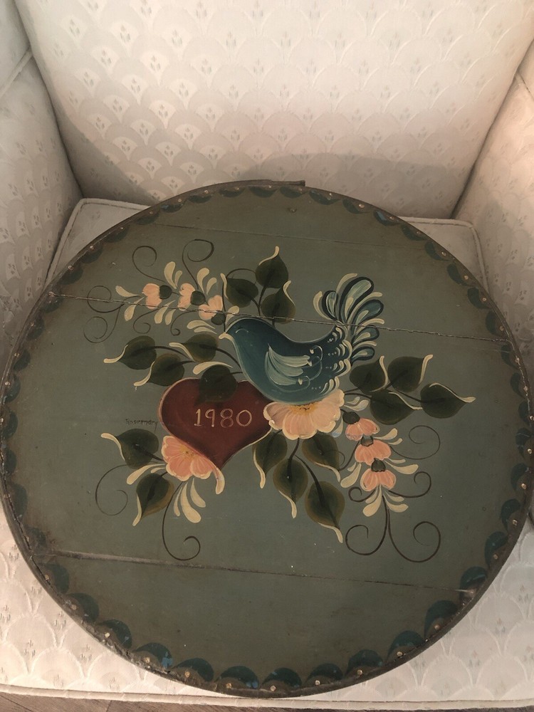 Features:Hand PaintedMaterial:WoodEngraved:NoSubject:floral and birdColor:MulticolorRoom:Any RoomCustomized:NoTime Period Manufactured:1980-1989Shape:RoundOccasion:All OccasionsOriginal/Reproduction:OriginalNumber in Pack:1Size:LargeFinish:PaintedType:Box