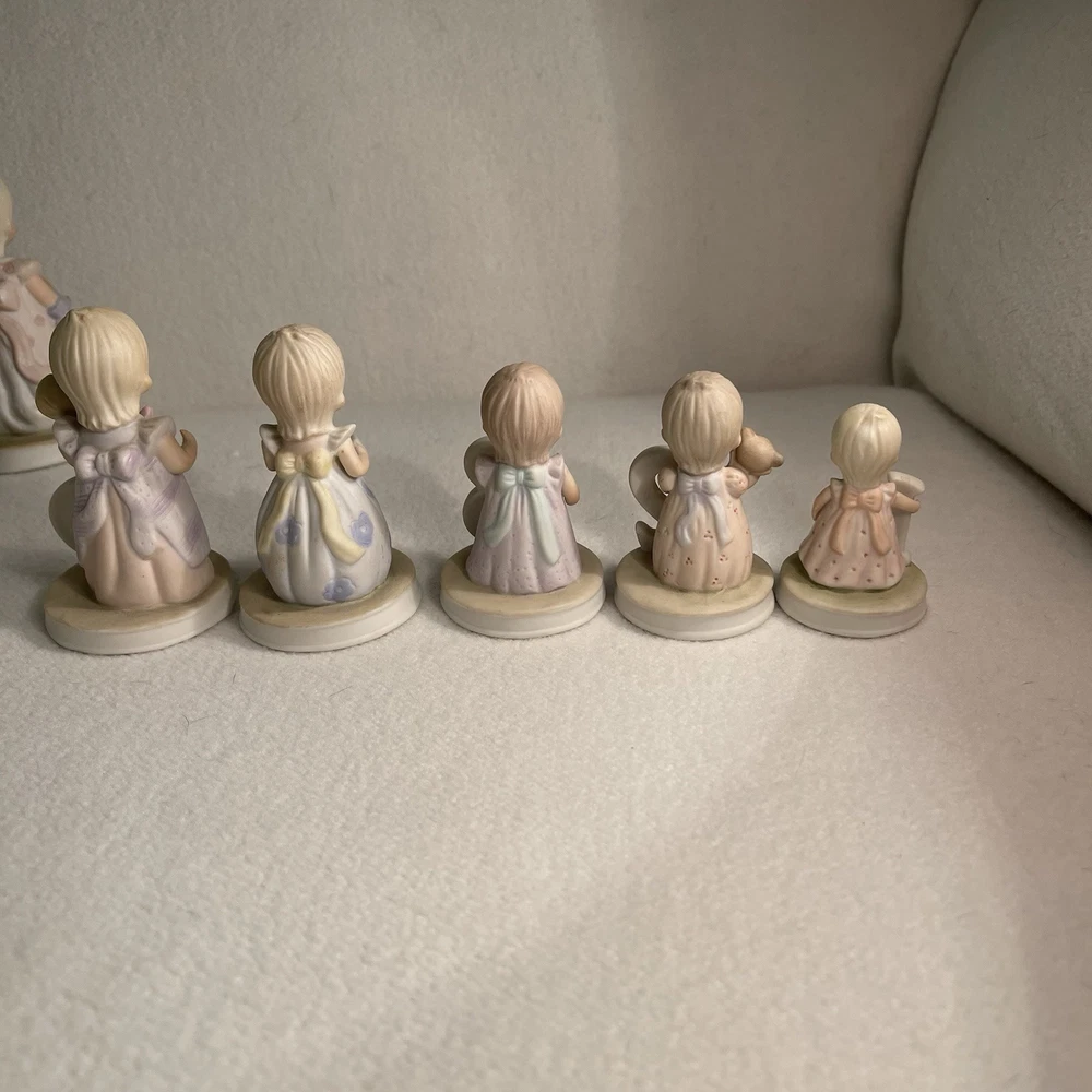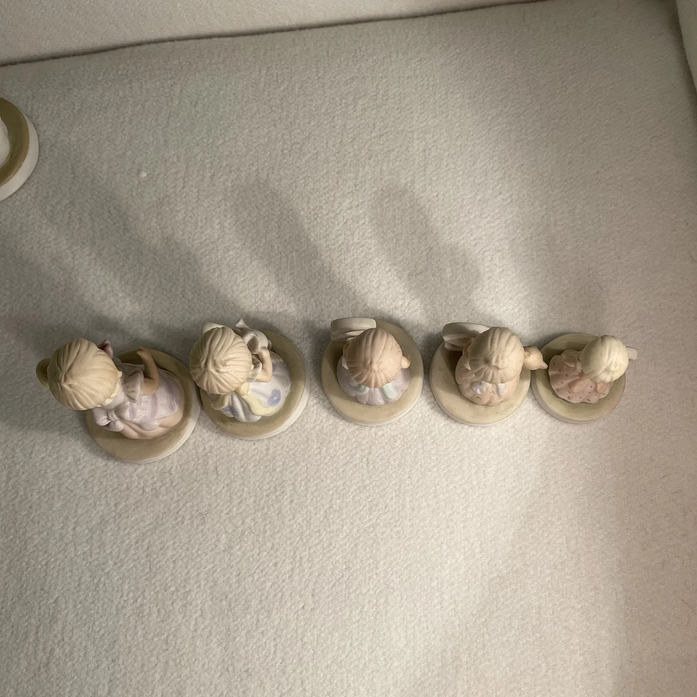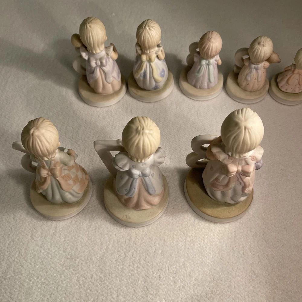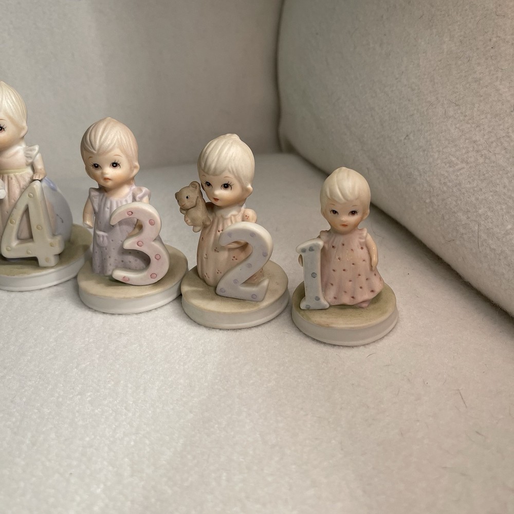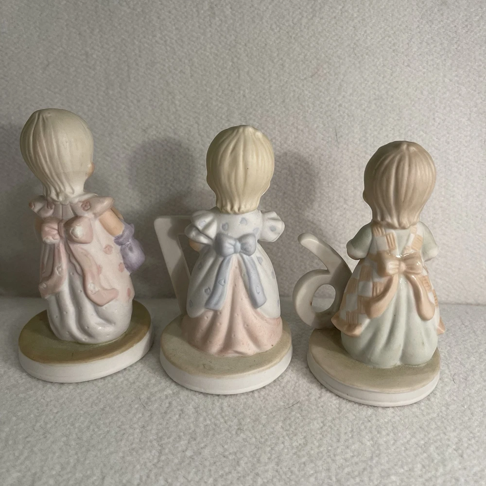 This vintage 1982 Lefton China Christopher Collection features a lot of 1-8 year girl figurines. Made of porcelain and hand-painted, these assorted multicolor figurines depict girls in various stages of growing up. Each figurine in the set represents a different age from 1 to 8 years old and is part of the "Growing Up Girls" collection from the 1980s. With a matte finish, these original figurines from China weigh 1.4 lbs and are a charming addition to any collection or decor. Mint condition. All new with tags.