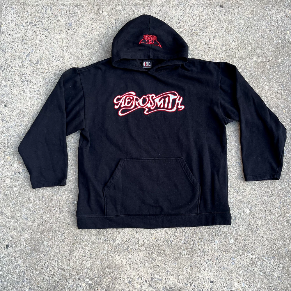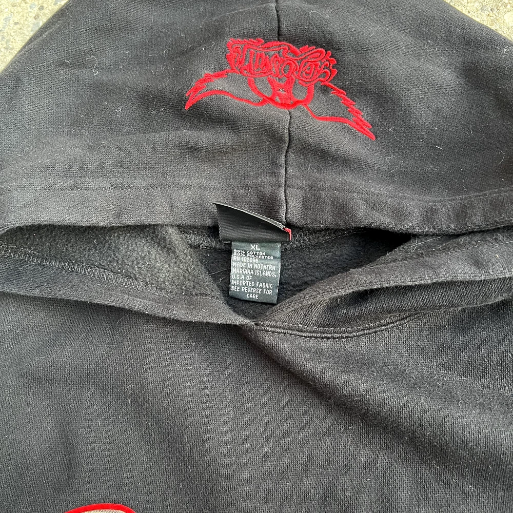 Raised metallic silver logo on front and red embroidered logo on hood Giant tag Y2K Pit to pit 27" Length 28"