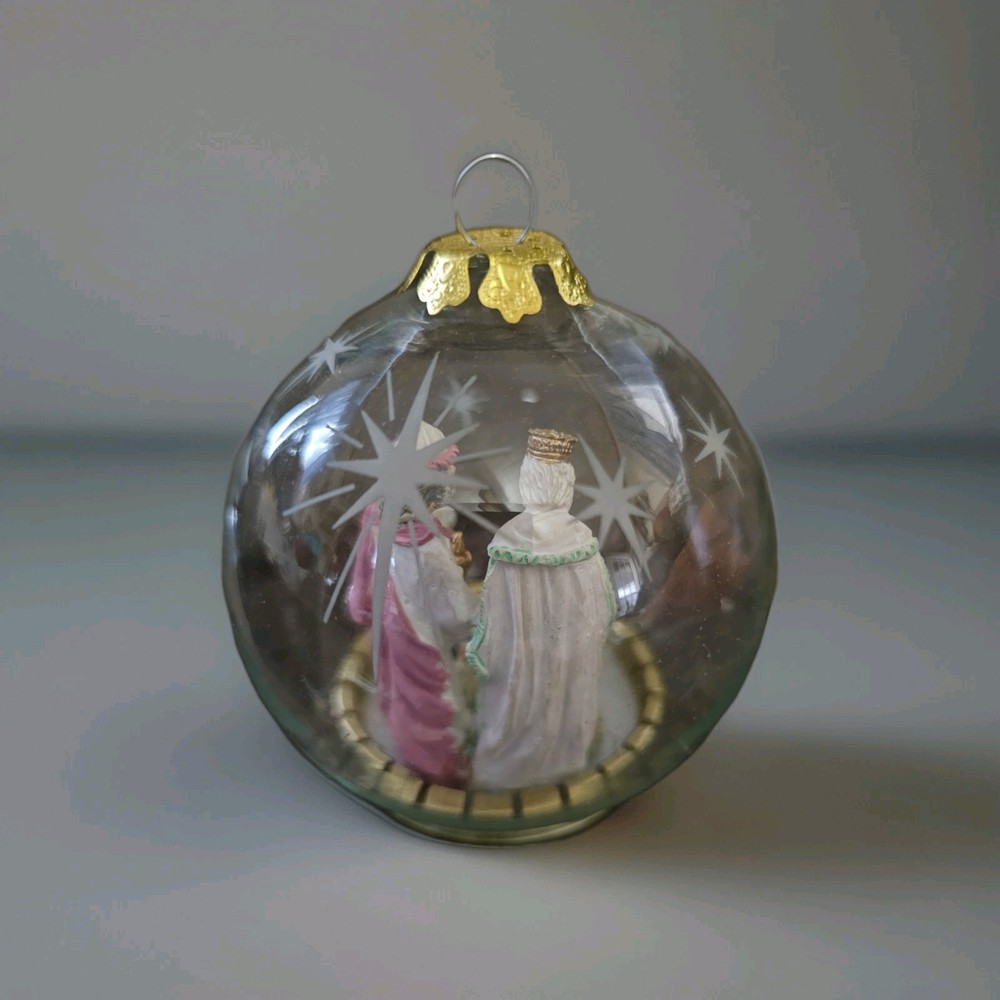 The Vtg 1994 House of Lloyd Christmas Around the World 3 Kings Nativity Ornament is a small, round ornament featuring Three Kings from the Nativity story. Part of the Around the World collection by House of Lloyd, this religious-themed ornament is a unique addition to any holiday decor. please note that ornament does not have original box!