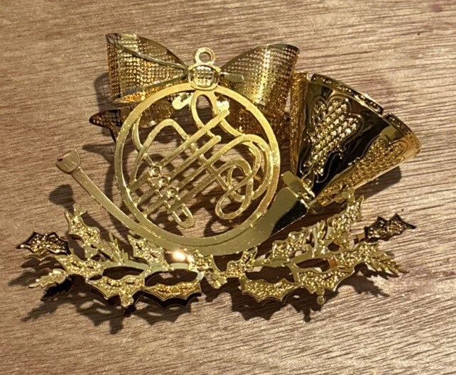 HomeVtg 1997 Danbury Mint French Horn 23kt Gold-Plated 3-D Christmas Ornament Bow