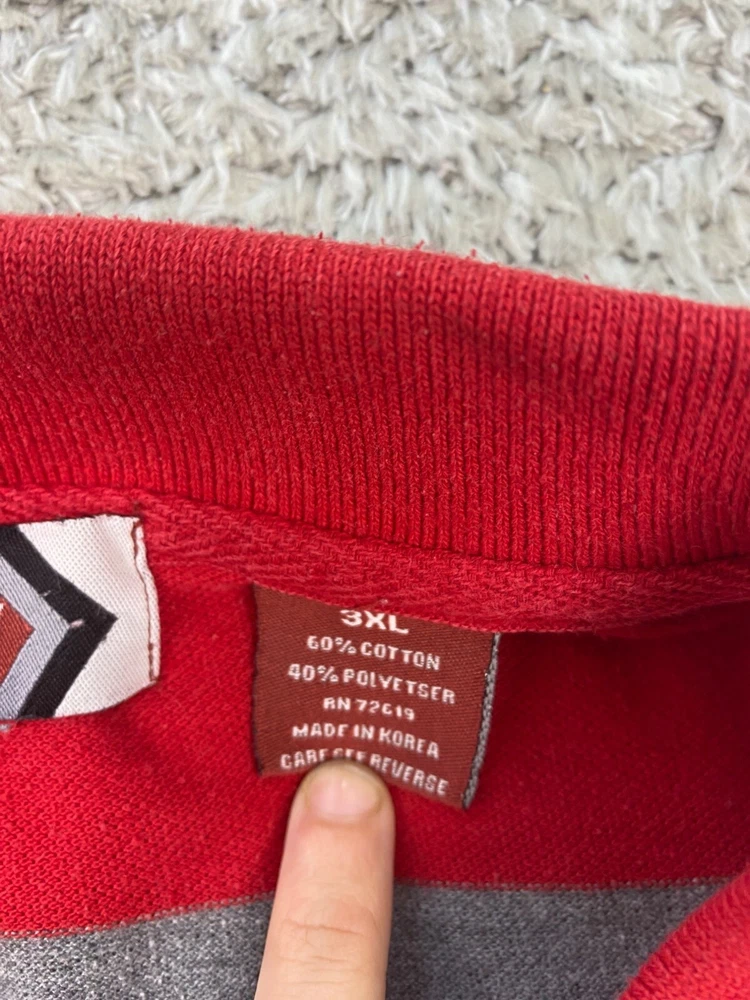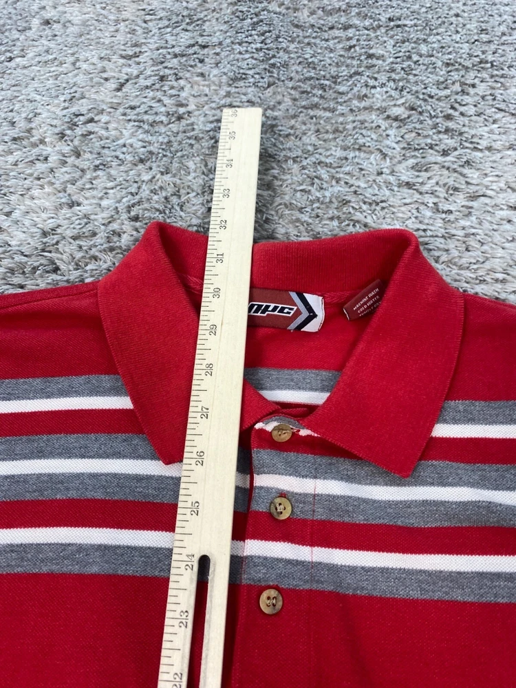 Theme: 90s, Hip Hop Pattern: Striped Fabric Wash: Medium Material: Cotton Fit: Regular Color: Red Performance/Activity: Golf, Rugby, Walking Neckline: Collared Brand: 212 NYC Sleeve Length: Short Sleeve Size: 3XL Type: Polo Country/Region of Manufacture: Korea, Republic of Fabric Type: Knit Accents: Button Department: Men Size Type: Regular Vintage: Yes