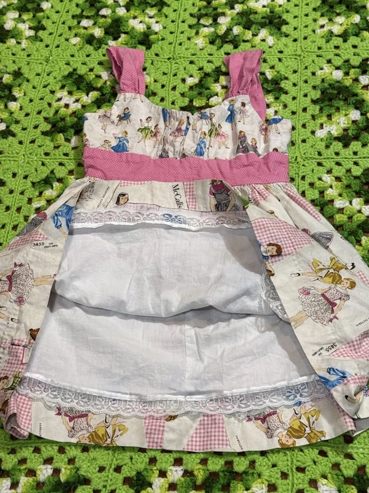 Vintage Handmade Daisy Kingdom Dress teddy bear bunny cat Print Easter Boho