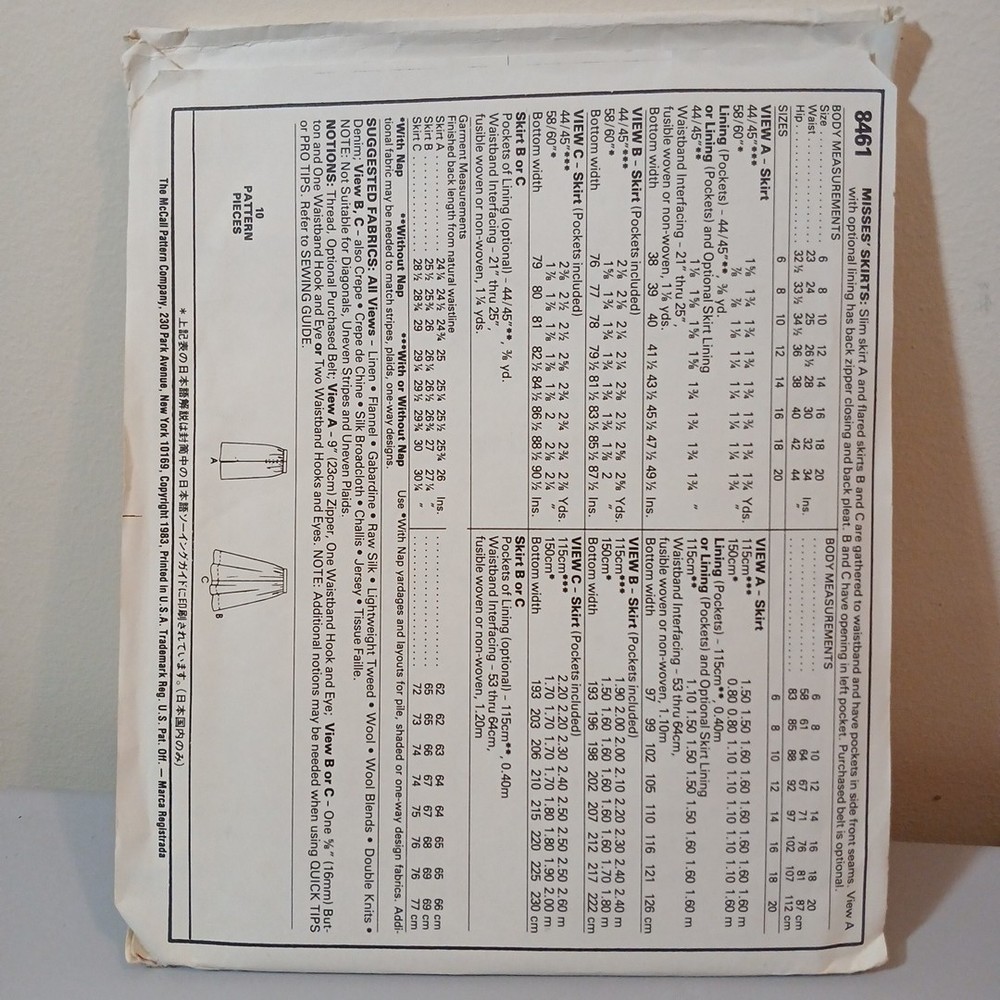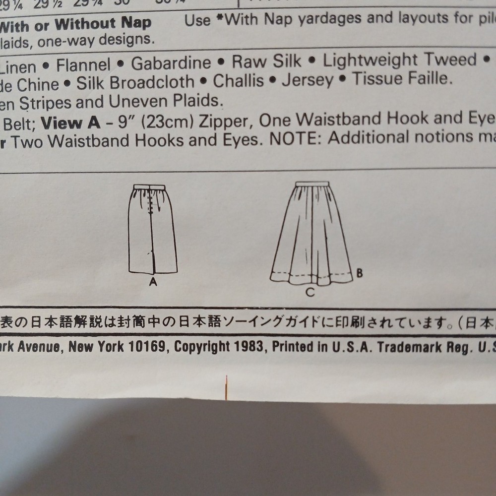 The product is a vintage 1980s McCall's sewing pattern for a skirt in size 10 with a waist measurement of 25 inches. It is uncut and designed for adult and teenage women. The pattern is compatible with sizes 8, 12, and L/M. Made in the United States, it captures the fashion trends of the 1980s and allows for the creation of a unique and retro-inspired skirt. Perfect for those who enjoy sewing and crafting with a touch of nostalgia.