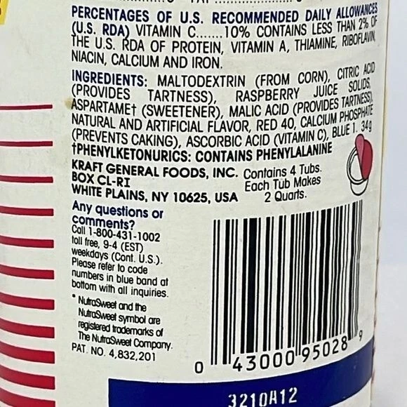Vintage 1980s Raspberry Ice Sugar Free Crystal Light NEW SEALED kitchen decor movie prop drink home general store SEE ALL PHOTOS FOR CONDITION