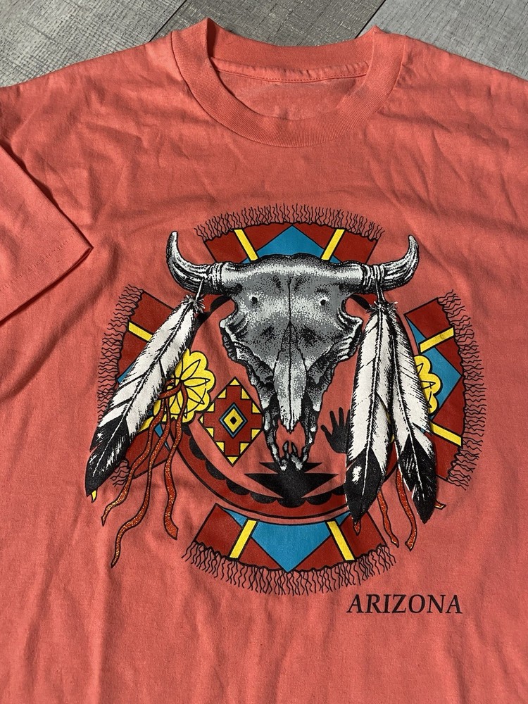Vtg 90s Arizona Cow Skull T-Shirt Medium Native America Feather Puff Print in excellent condition missing tag Any questions feel free to contact me Length: 27” inches Chest: 20” Sleeves: 7”