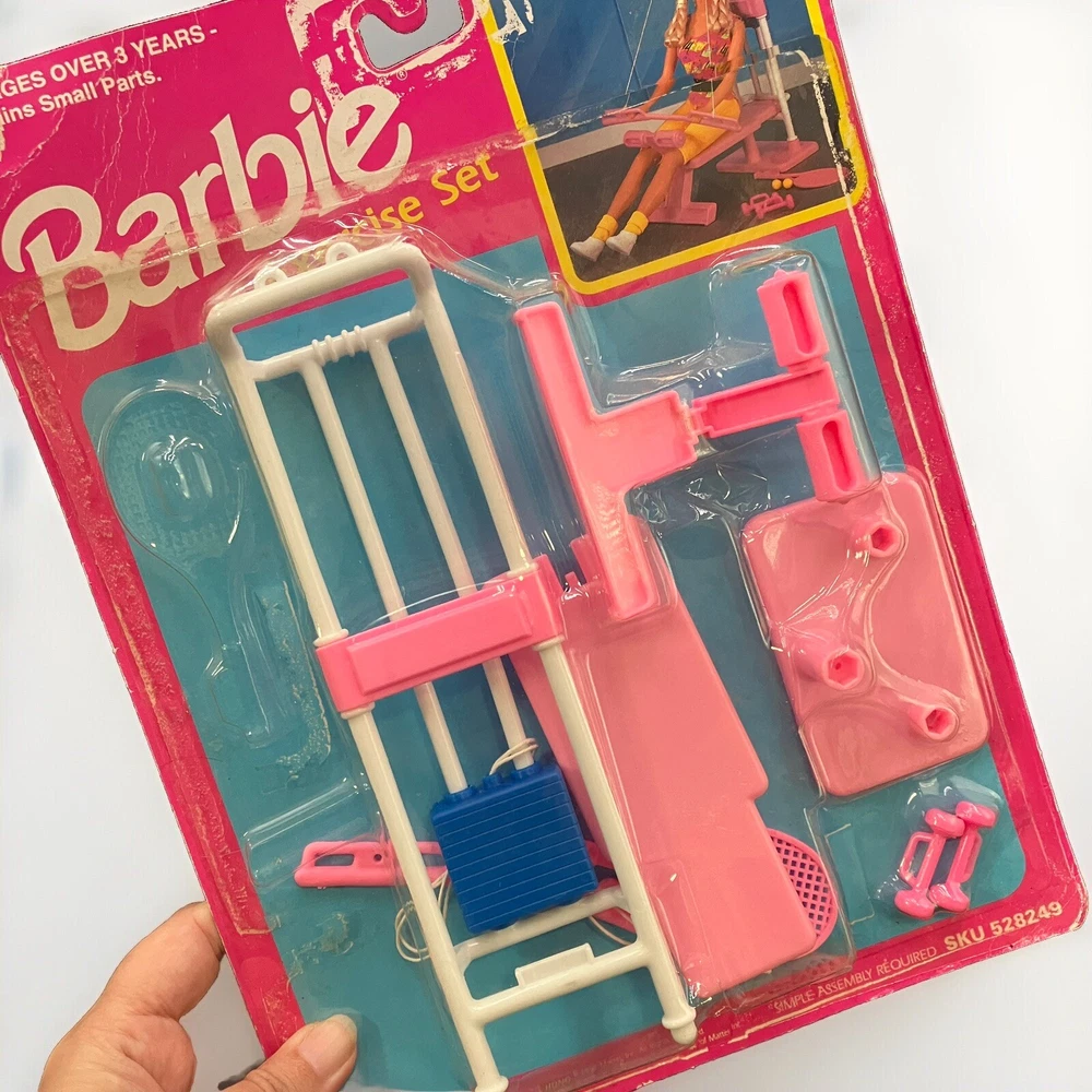 Original/Licensed Reproduction: Original Furniture Type: Exercise Set Type: Furniture Vintage: Yes Features: Assembly Required Material: Plastic Franchise: Barbie Brand: Mattel Compatible Doll Size: 11 in Character: Barbie Year Manufactured: 1990 Color: Pink Room: Exercise Room Set Includes: Exercise Set, Dumbells, Tennis Racket Doll Type: Fashion Doll Antique: No Time Period Manufactured: 1990-1999