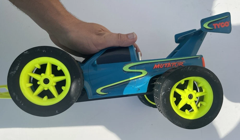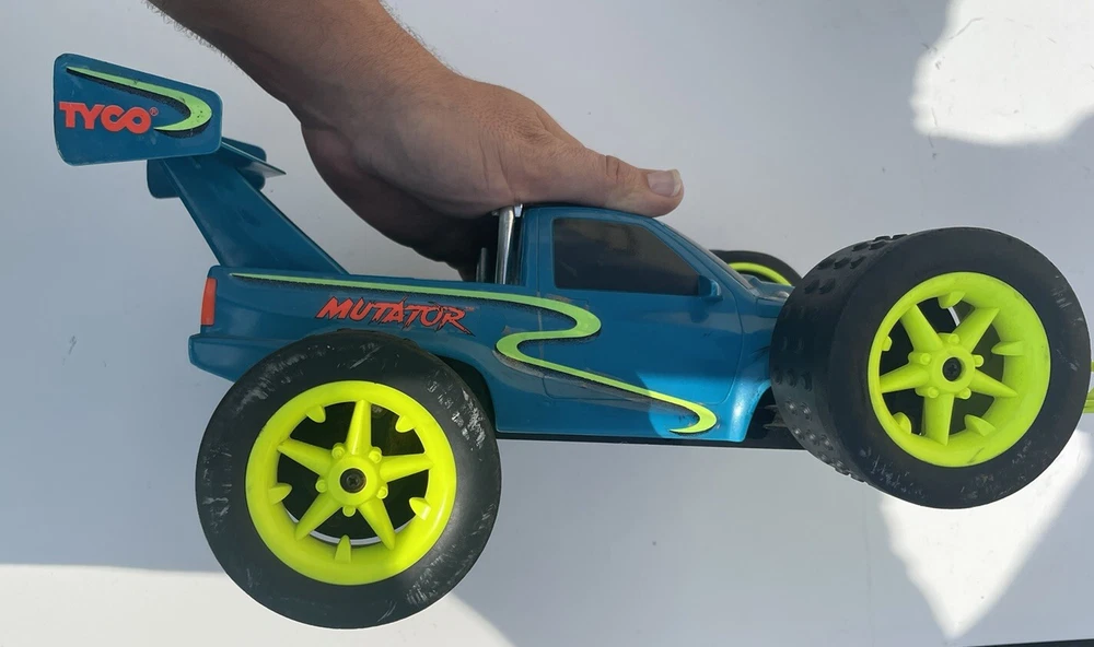 This vintage Tyco RC Mutator truck/car is a must-have for any collector or fan of off-road and on-road radio control vehicles. The blue plastic material gives it a unique and eye-catching appearance, while the 4WD capabilities ensure it can handle any terrain. Although it is untested and does not come with a remote or battery, this model is still a great addition to any collection. Its age level is suitable for children and adults alike, and its fuel type is electric. Don't miss out on the opportunity to own this piece of Tyco RC history. There is some damage to the front bumper and exhaust pipes . Please check the pictures carefully in order to better assess the physical condition. I am willing to bundle deal with multiple purchases. I will provide fast and care shipping. I will respond to all inquiries. Thank you for your time. T