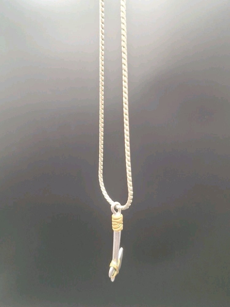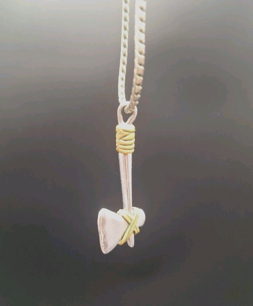 This vintage Viking or Native American Tomahawk-Axe Necklace is a unique and stylish piece made of sterling silver. The pendant features an axe or tomahawk hatchet design, adding a touch of ethnic and regional flair to any outfit. The necklace is signed as "No," and it is perfect for special occasions such as Christmas, graduation, weddings, anniversaries, and birthdays. Made with a silver toned chain, this pendant charm necklace is a beautiful and meaningful addition to any jewelry collection.