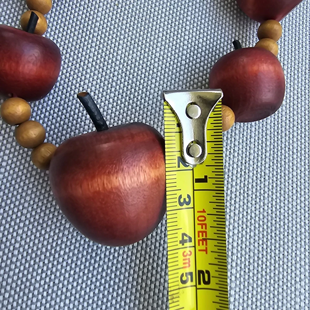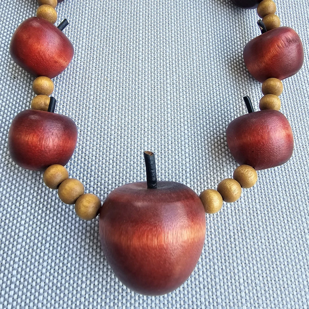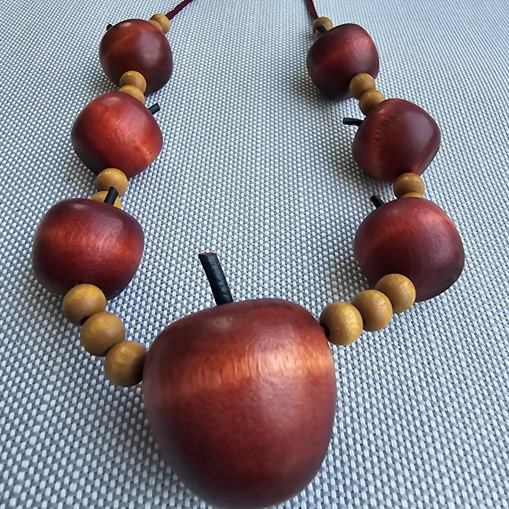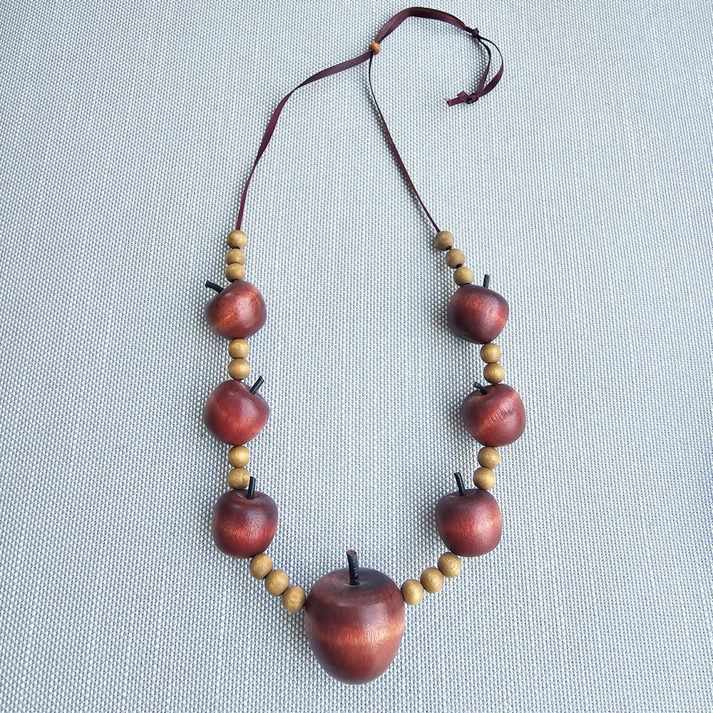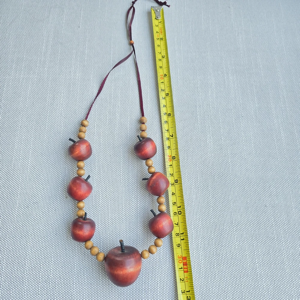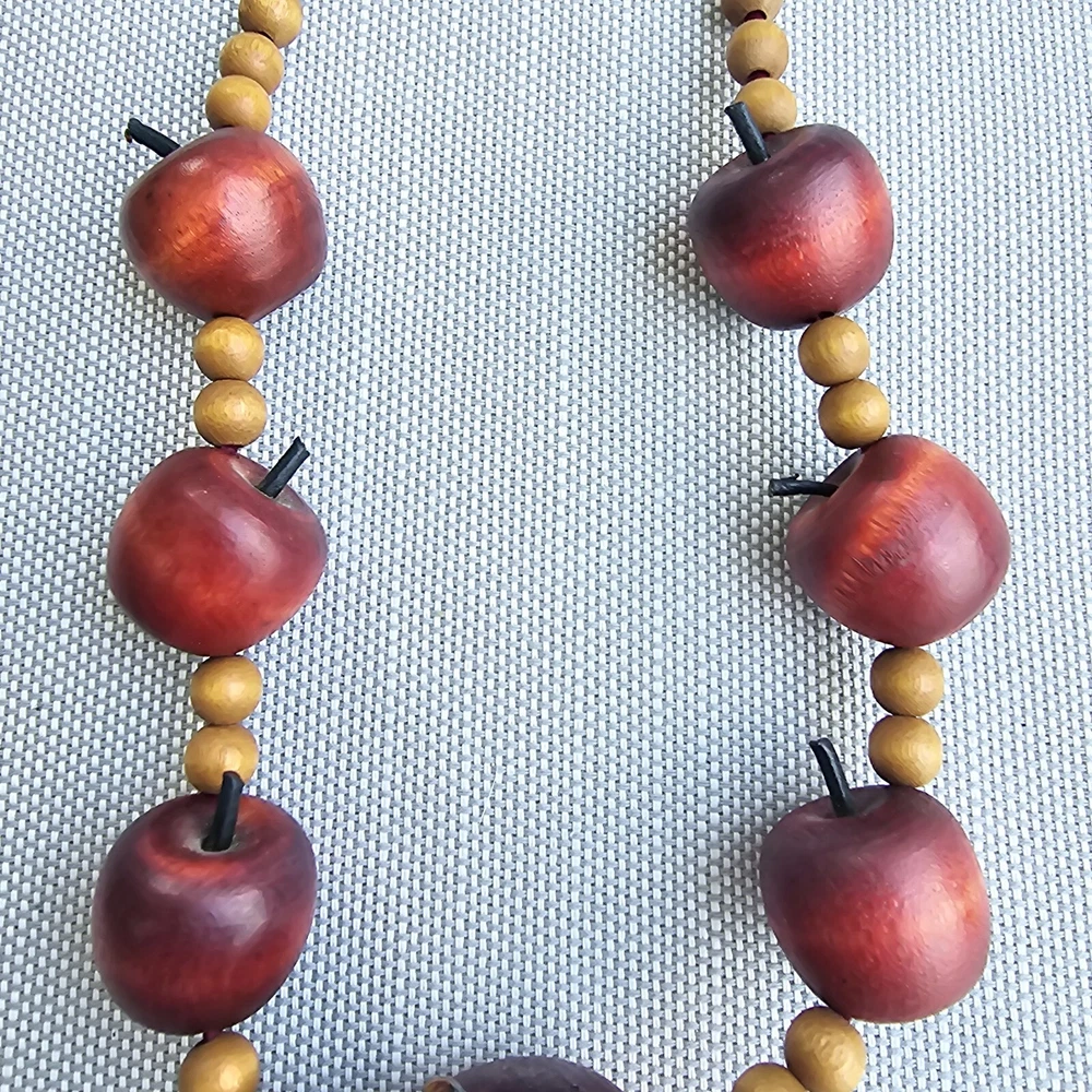 This vintage necklace is the perfect back-to-school gift for any teacher or educator. The necklace features a beautiful red apple pendant in a beaded style, with no metal. The wood material adds a touch of rustic charm to the piece, making it a unique addition to any jewelry collection. Whether you're looking for a fashionable accessory or a meaningful gift, this necklace is sure to impress.