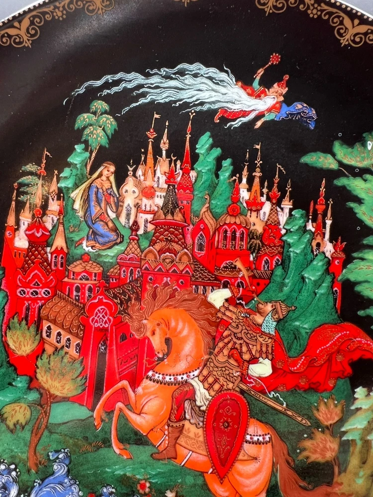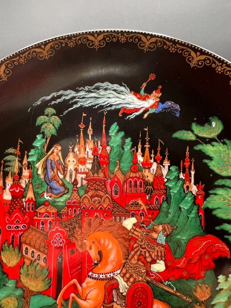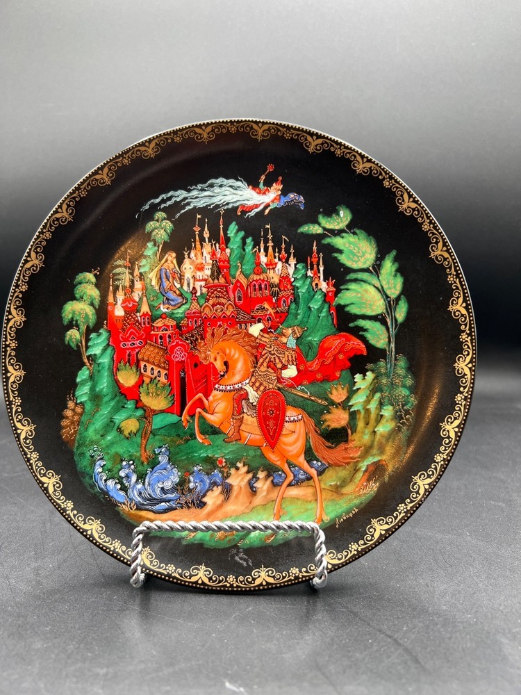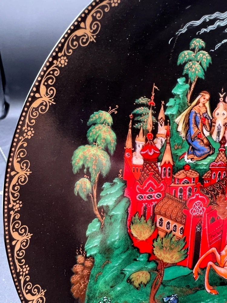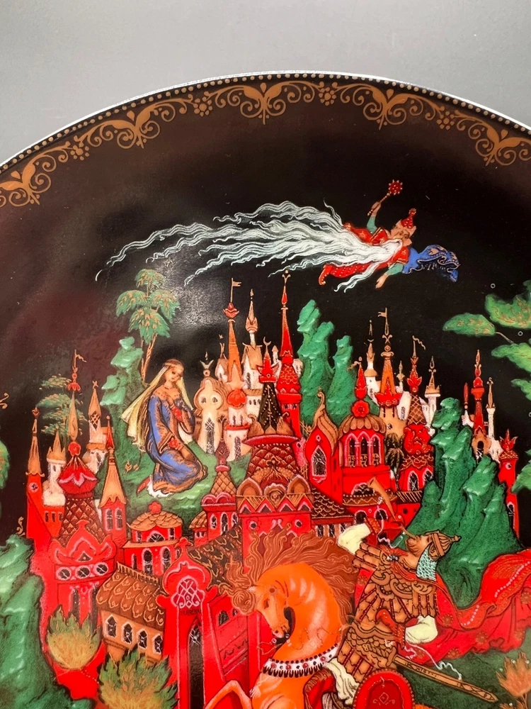 Shape: Round Item Diameter: 7.5 in Occasion: All Occasions Origin: Russia Time Period Manufactured: 1980-1989 Antique: No Era: Late 20th Century (1970-1999) Type: Collector Plate Production Technique: Pottery Franchise: Bradford Exchange Color: Multicolor Seller Notes: “Good condition” Vintage: Yes Material: Porcelain Brand: Bradford Exchange Theme: Alexander Pushkin's poem Ruslan and Ludmila Culture: Russian Style: Decorative Production Style: Art Pottery