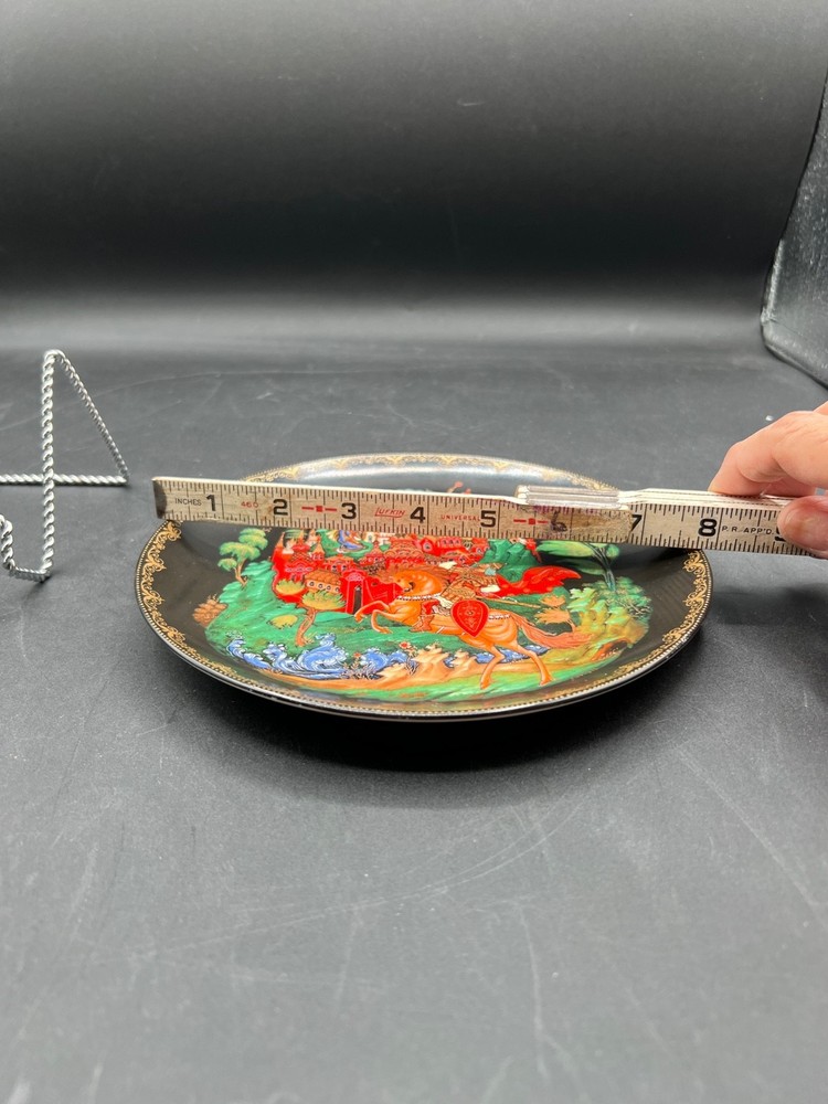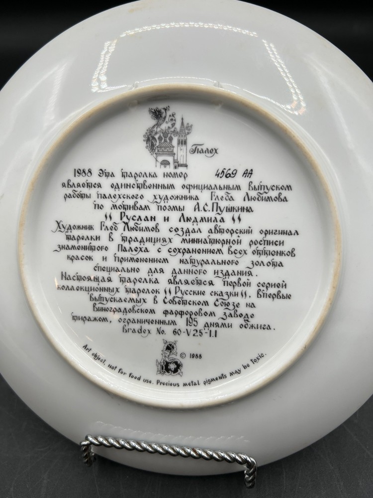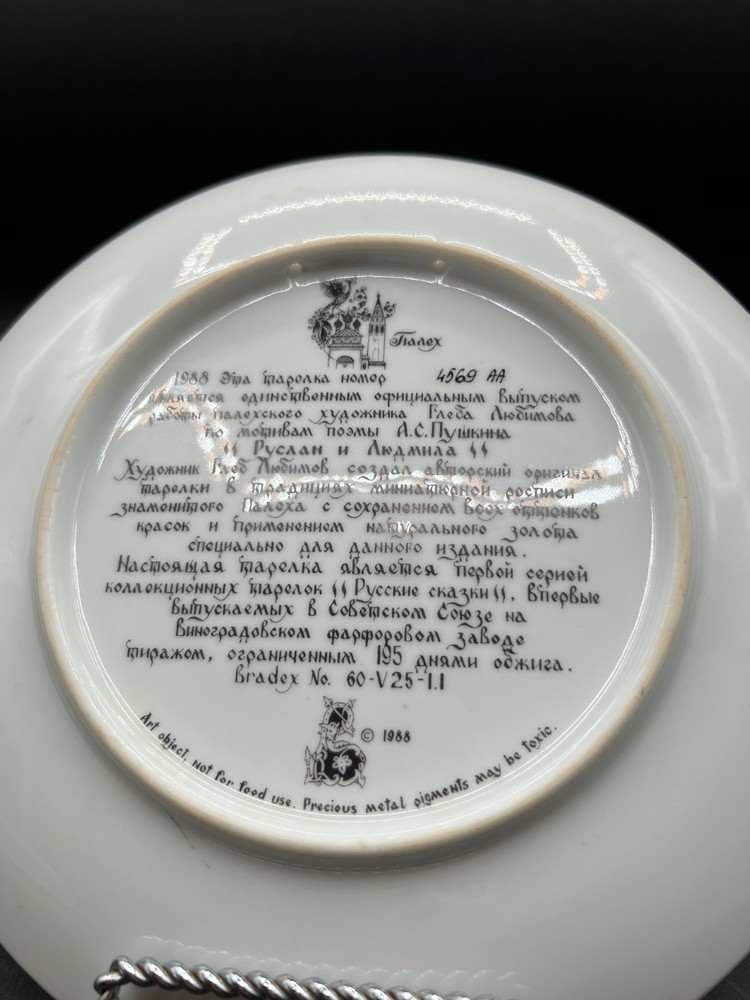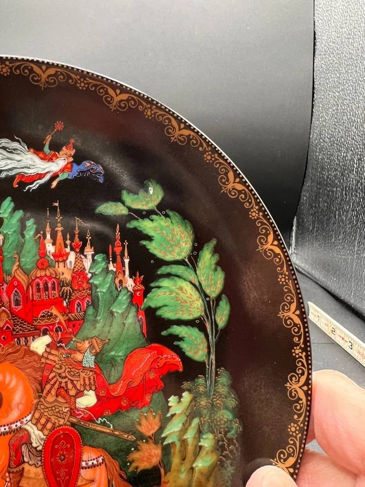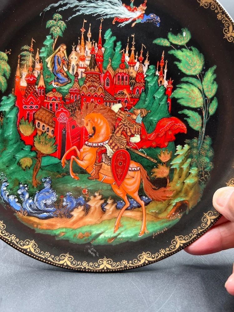 Shape: Round Item Diameter: 7.5 in Occasion: All Occasions Origin: Russia Time Period Manufactured: 1980-1989 Antique: No Era: Late 20th Century (1970-1999) Type: Collector Plate Production Technique: Pottery Franchise: Bradford Exchange Color: Multicolor Seller Notes: “Good condition” Vintage: Yes Material: Porcelain Brand: Bradford Exchange Theme: Alexander Pushkin's poem Ruslan and Ludmila Culture: Russian Style: Decorative Production Style: Art Pottery
