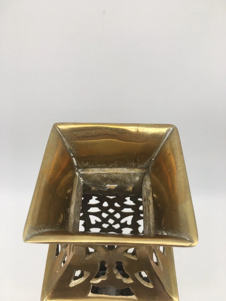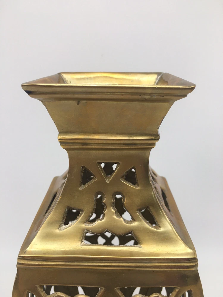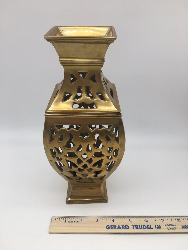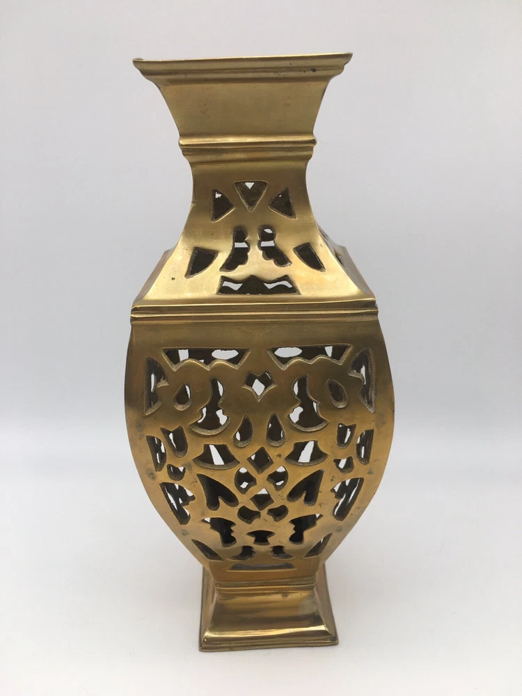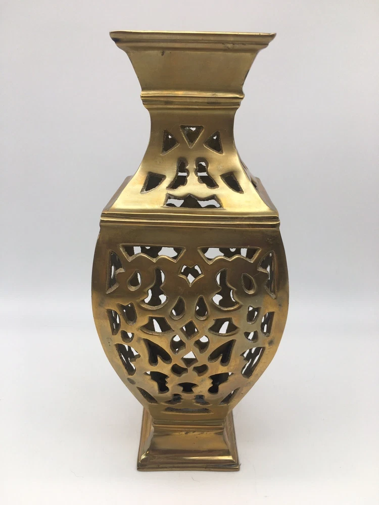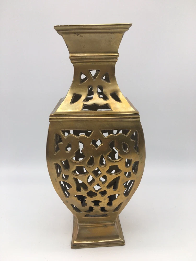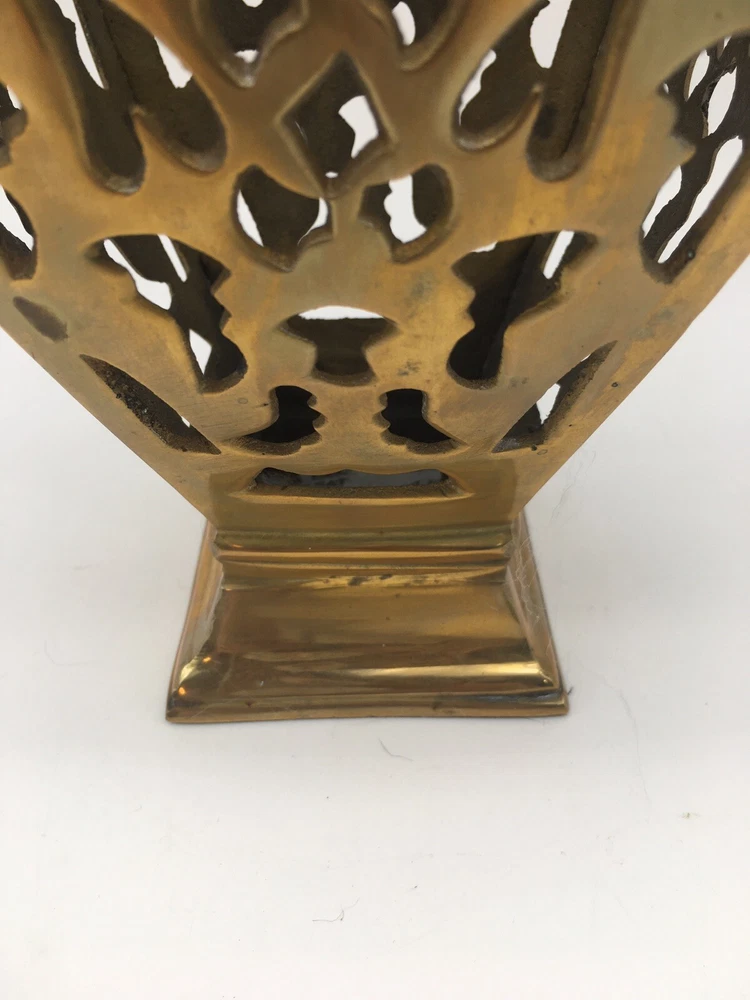 Vintage Brass Vase Filigree Design Heavy 11” India Boho Hollywood Regency. Condition is pre owned. Shipped USPS Ground Advantage. • Measures approximately 11” T x 4.25” W • Has light wear consistent with age, please see all photos