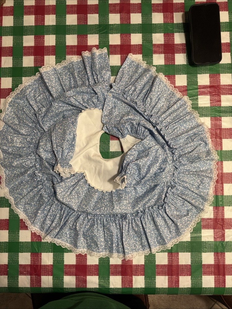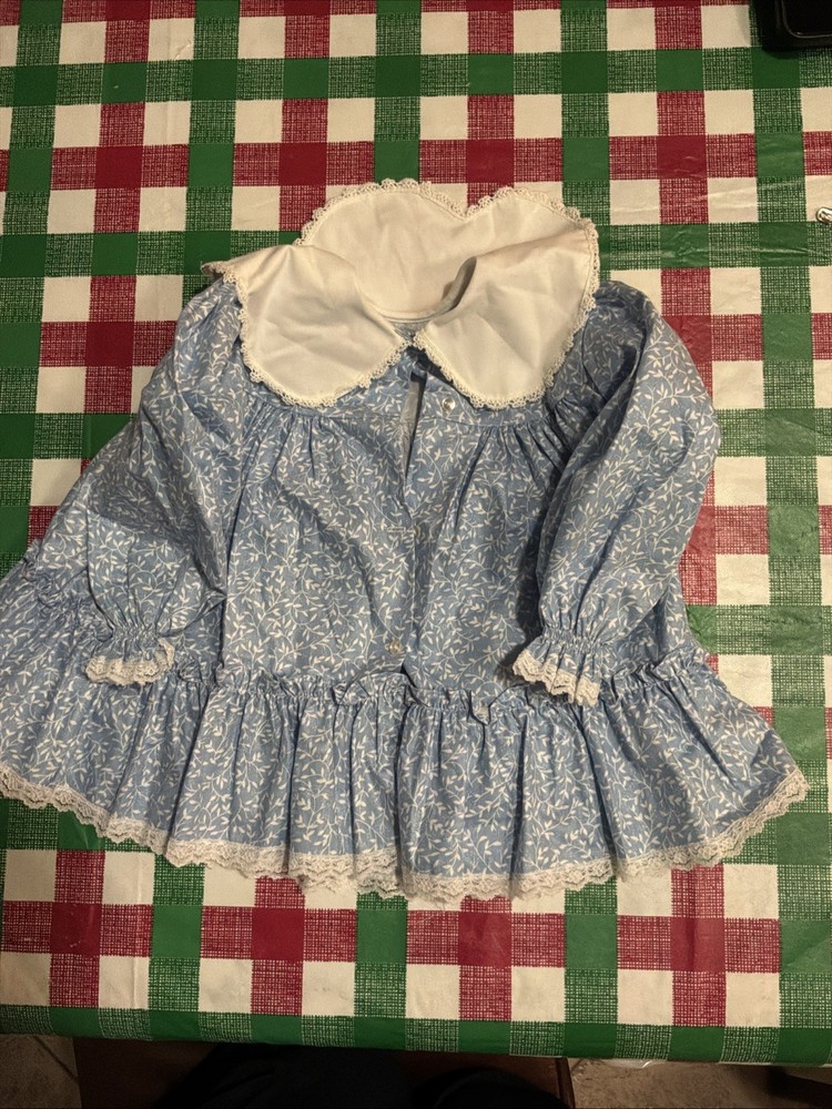 This vintage Bryan baby girls dress in size 18 months features a ruffled blue design with a bow, layered lace, and puffy sleeves. Made of polyester and cotton, the knee-length dress has a round neckline, short puff sleeves, and a button closure. Perfect for travel, parties, weddings, or formal occasions, this fit and flare style dress exudes a classic and retro theme with a touch of 80s flair. The lightweight and smocked fabric makes it comfortable for year-round wear, whether it's winter, summer, fall, or spring.