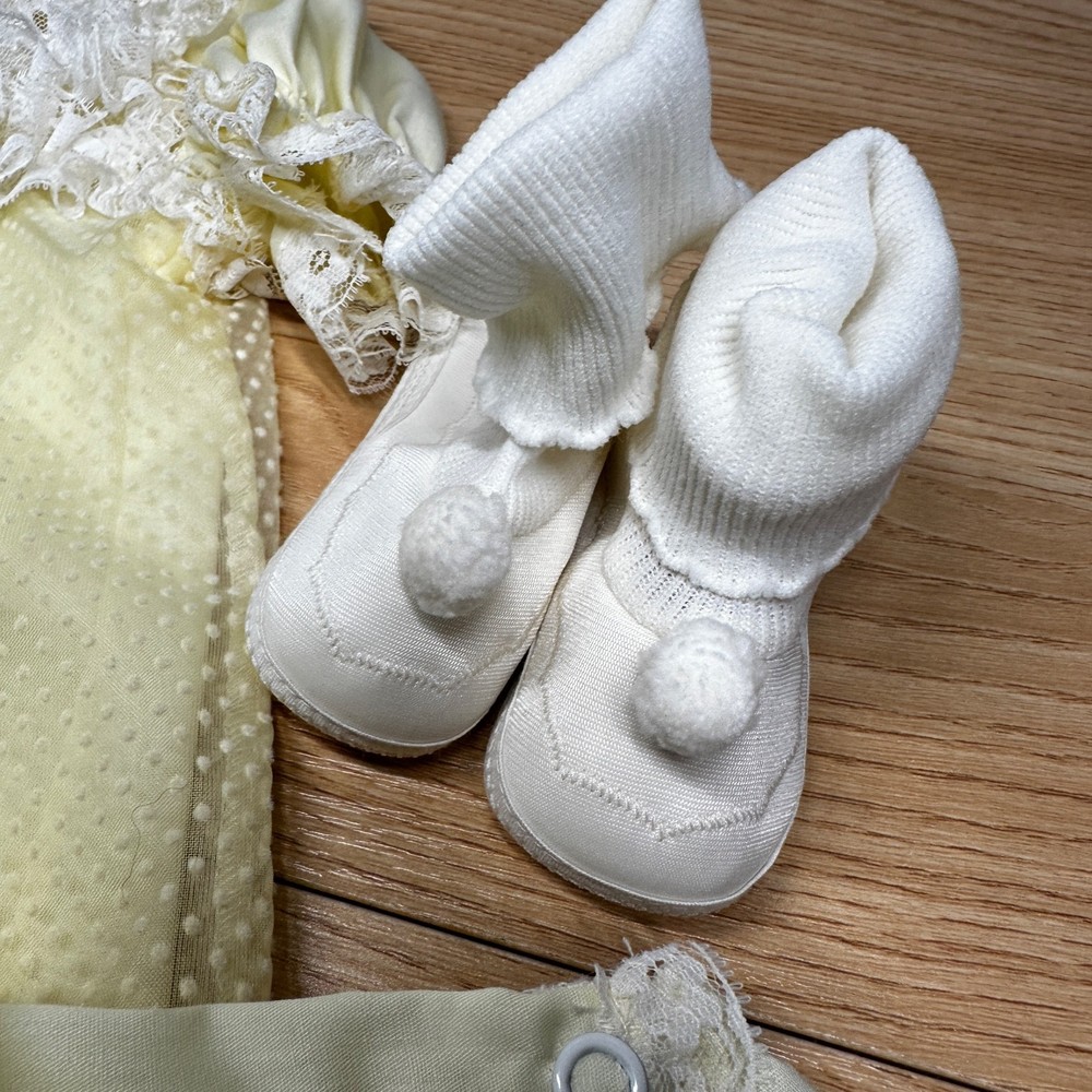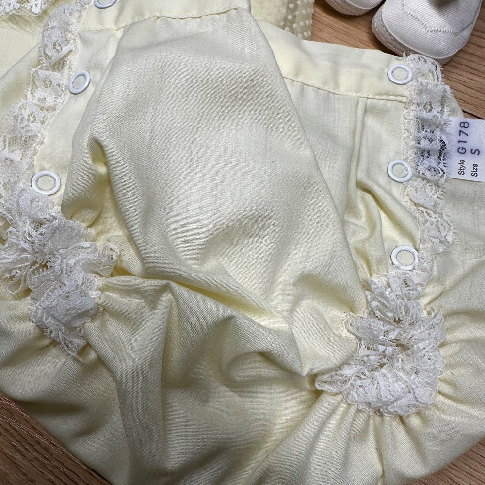 Item description: Vtg Bryan Baby Girls Dress 6M Ruffled Yellow Bow Layered Lace Puffy Sleeve 4 piece set (dress, bloomers, booties/socks, shawls) Pictures are part of the listing. Please review all of them before purchasing. Specific flaws will be pointed out and pictured, however if we miss anything, please message us about it and we can work together to resolve any issues. We work and ship out of a smoke free environment however we do resell from various sources. We wash all our clothing items but some odors might still be present. This will be noted in the description. Any non-clothing items are lightly cleaned but sold in "as found" condition. We s hip all items within 1 business day after payment is cleared. If you purchase on a Saturday after 12pm, your item will be shipped on Monday morning as our USPS is not open on Sundays. If you purchase on a Sunday or Holiday, your item will be shipped the day after the holiday. We happily accept returns within 30 days of purchase. Items must be returned in the condition they were received. Shipping both ways is the buyers' responsibility as we do NOT offer free returns. We are an EVERY THING STORE and sell all kinds of items. Please check out our store! We can combine shipping! Thanks for stopping by! We hope you find what you're looking for.