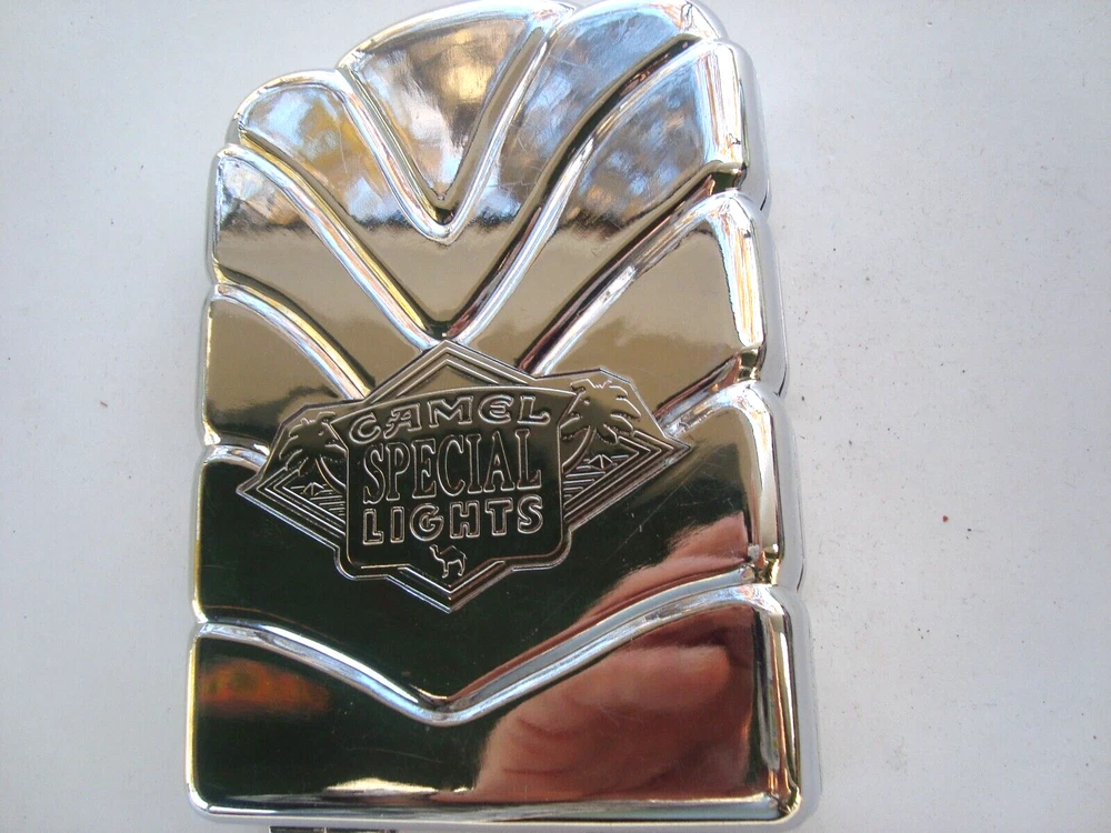 Vintage. Camel Special Lights Cigarette Case Chrome Look Plastic 5" with 2 AMEL Match Books. Please View all Photos & Read description before bidding. Thanks for Looking. I will combine shipping.