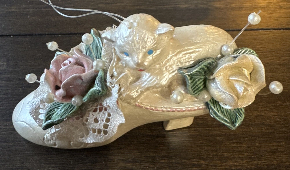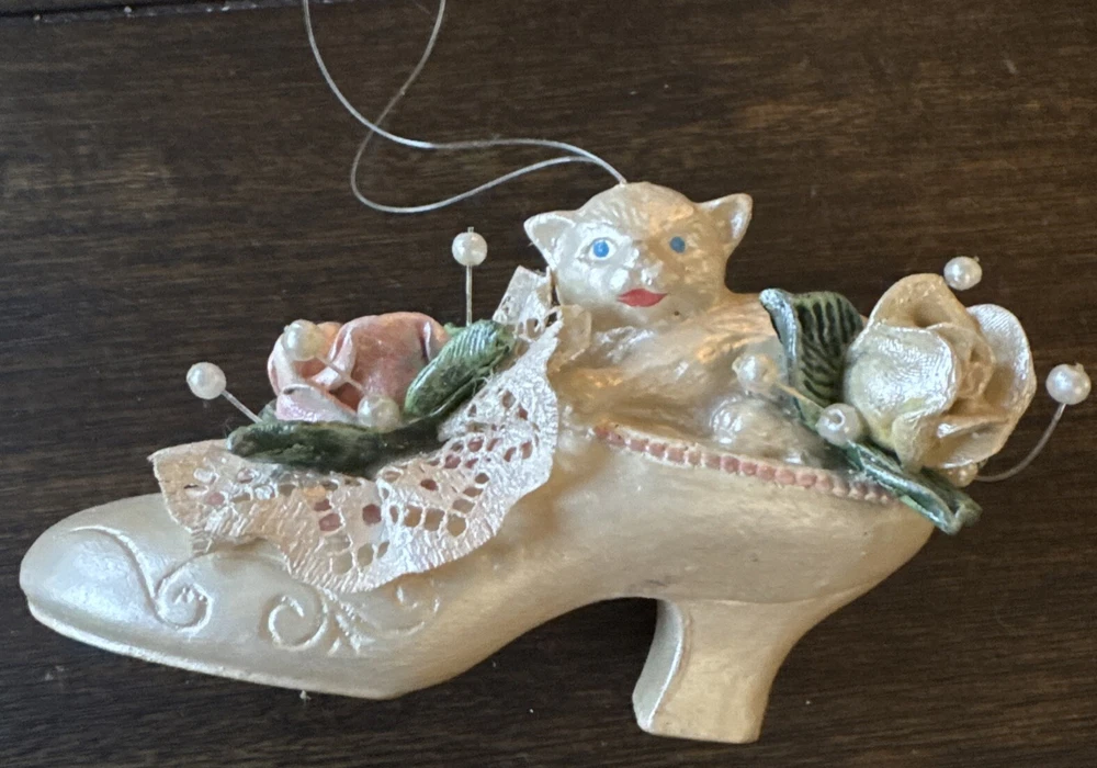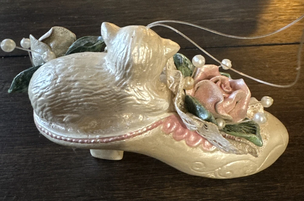 Vtg Cat In Shoe Ornament 4 Inches Long 2.75 Inches Wide 2.75 Inches Tall