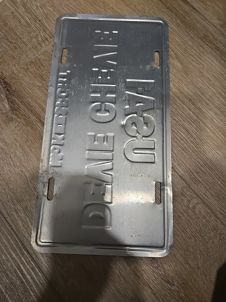 As found in an area estate. Aluminum plate. Has scuffing/loss upper left edge. Needs good final cleaning.