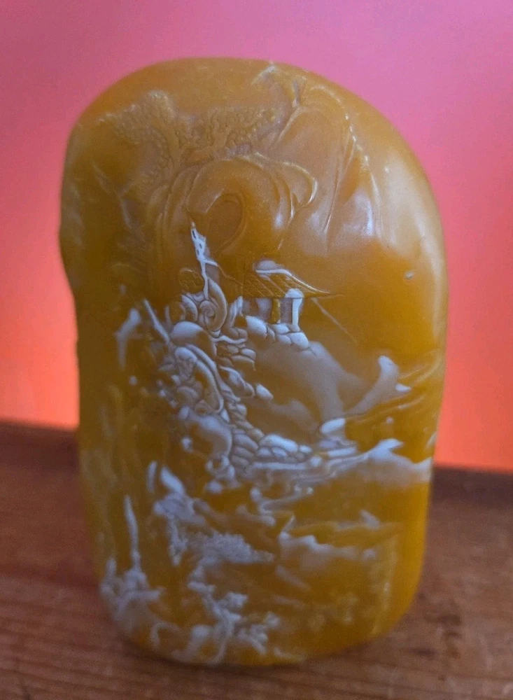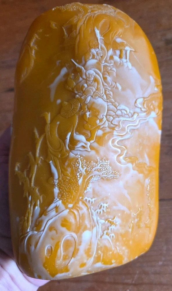 Very nice carved agate stone with alot of natural cloudy white incorporated into it, see all pictures of scholars carvings came from an Estate of a Chinese calligraphy master will be listing a lot of he's antique supplies in the coming weeks some very rare ink stones of many sizes and colors thanks for Looking Reach out With any questions you might have Lot 153