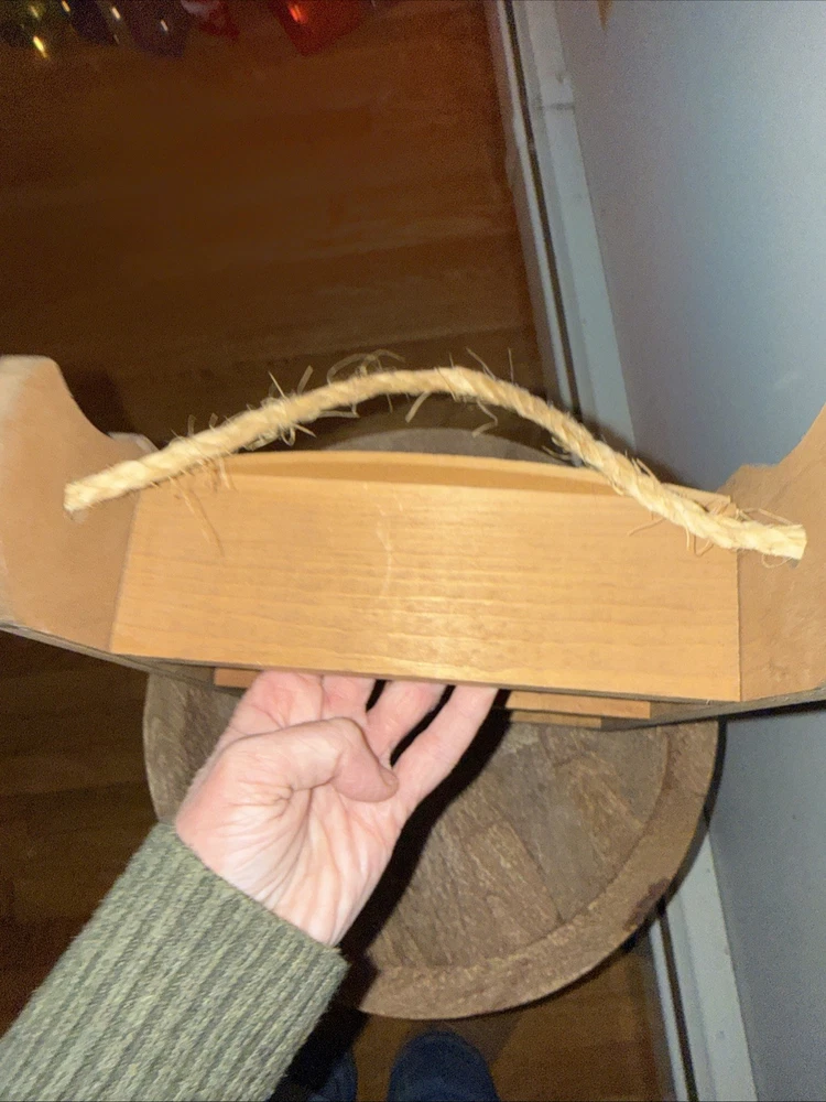 This vintage Christmas door decor is a charming addition to your holiday decorations. The sled is painted with a festive snowman design on a red sleigh, complete with a rope hanger for easy display. Made of wood, this unique piece adds a touch of rustic holiday cheer to your wall decor. Perfect for Christmas, this door decor brings a whimsical and classic touch to your seasonal decorations.