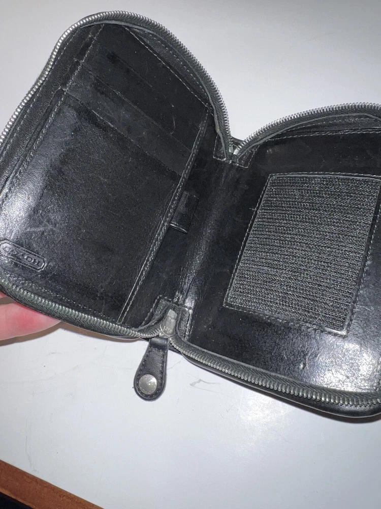 Vtg Coach Black Leather 4566c Zip Around Organizer Travel Pouch Wallet 5x5”