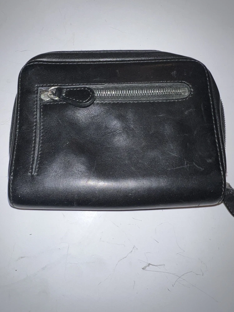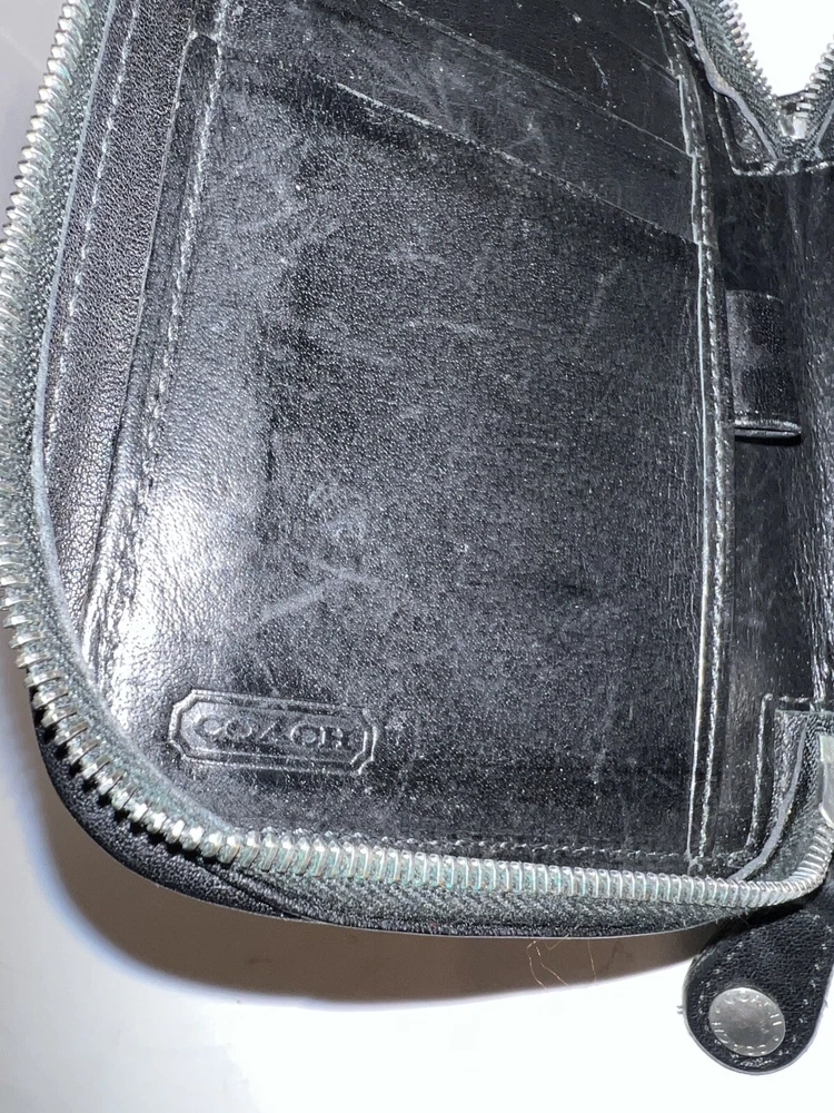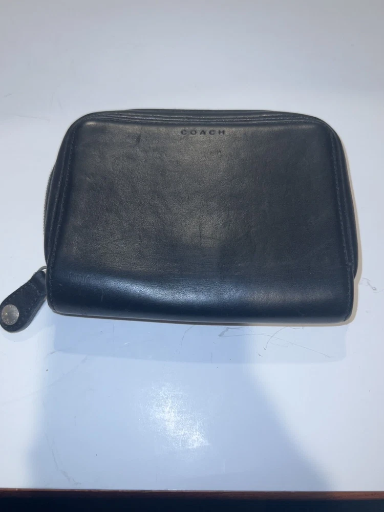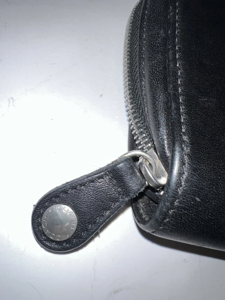 HomeVtg Coach Black Leather 4566c Zip Around Organizer Travel Pouch Wallet 5x5”