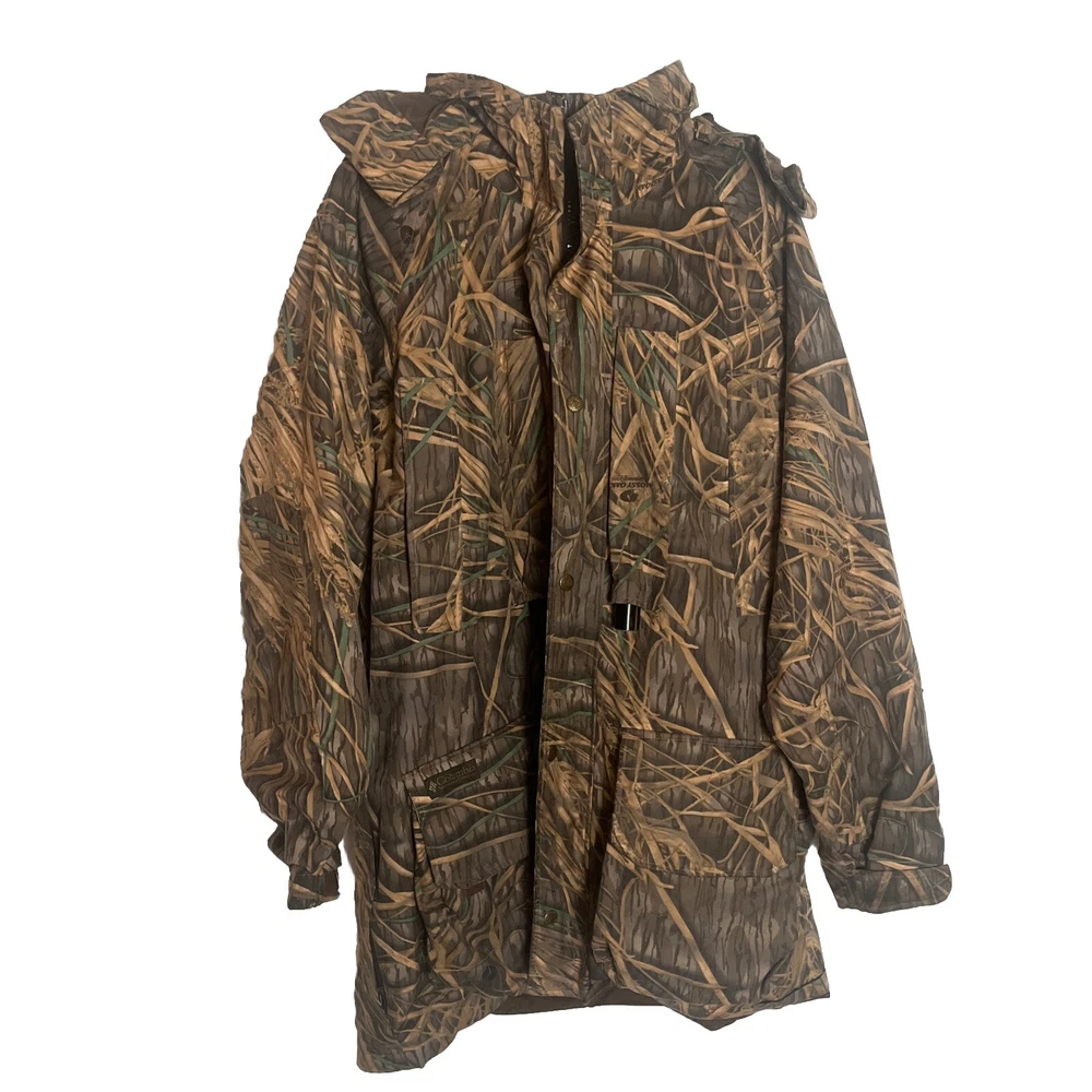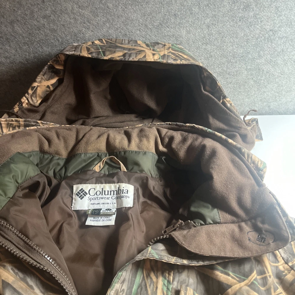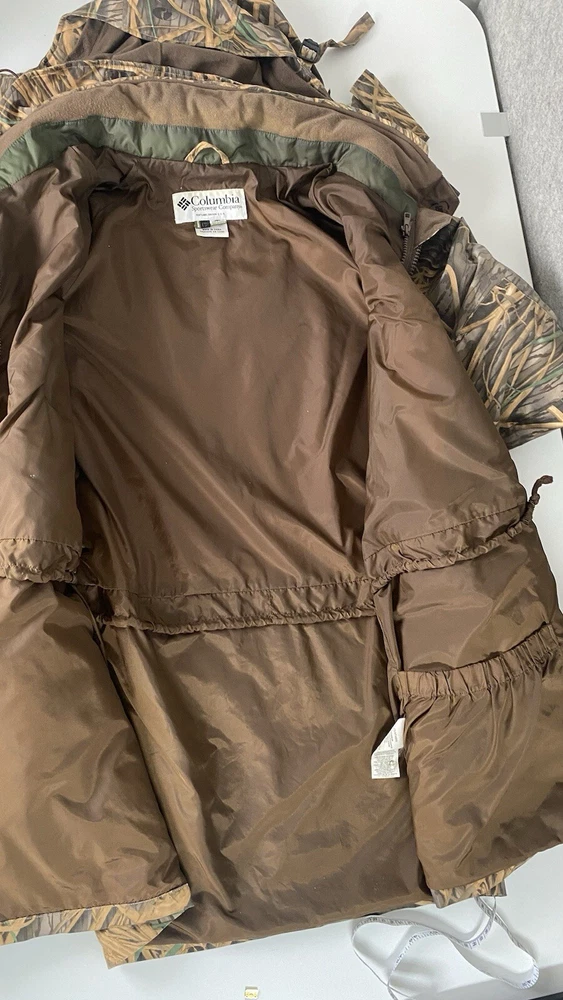 Vtg Columbia Mens Mossy Oak Camoflauge Omni Tech Hooded Jacket Sz Large Tall
