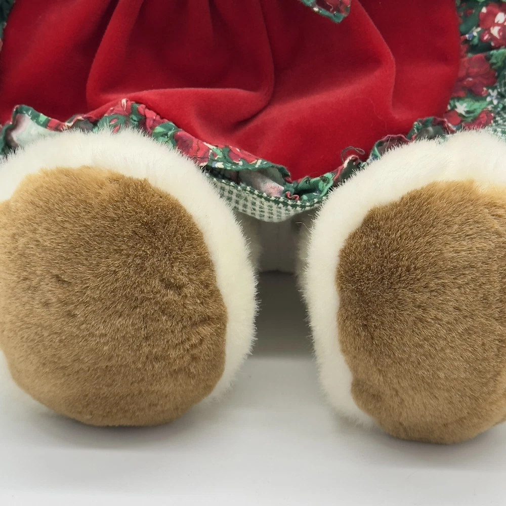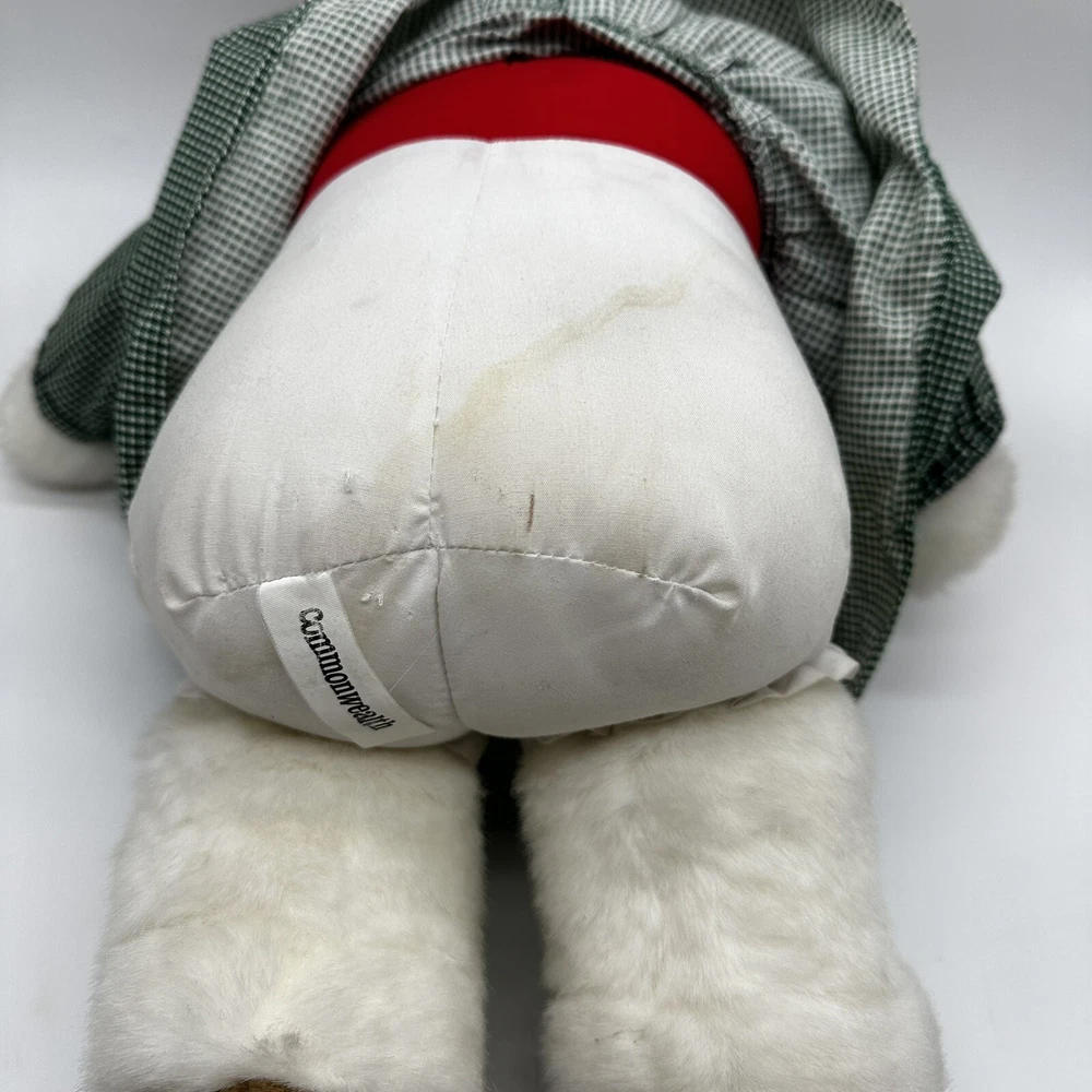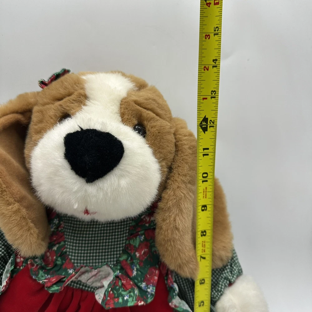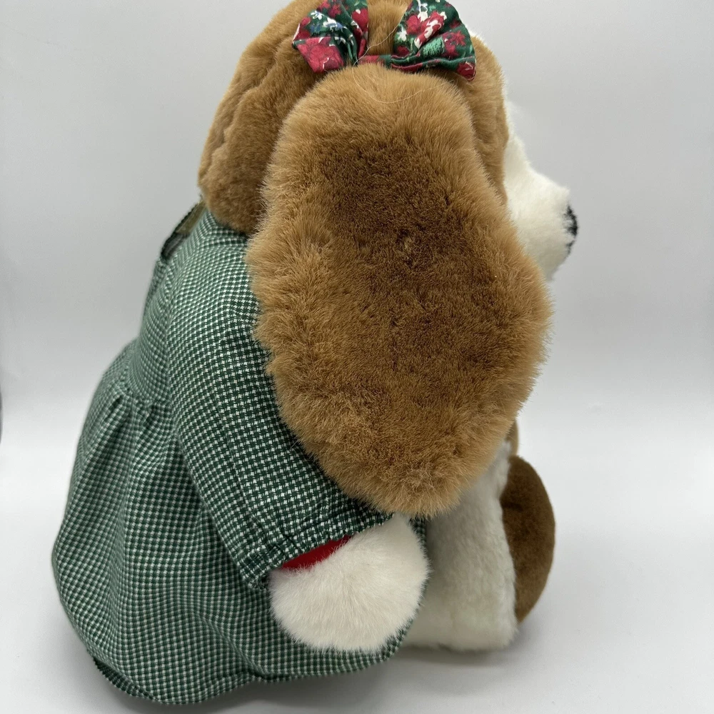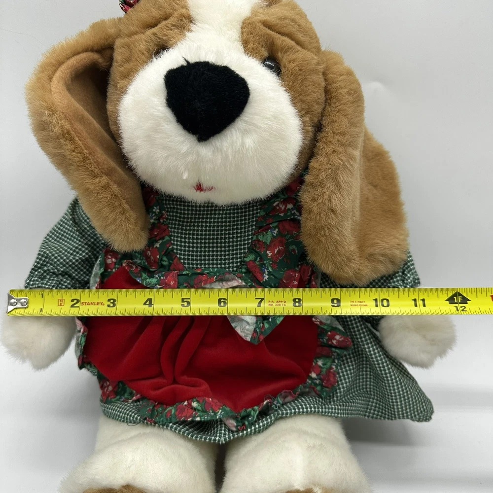 Vtg Commonwealth Brown Dog Plush Dress Christmas Stuffed Animal Toy Floppy Ears There is a water stain on her behind but it is covered by the dress. Otherwise, no rips or other stains.