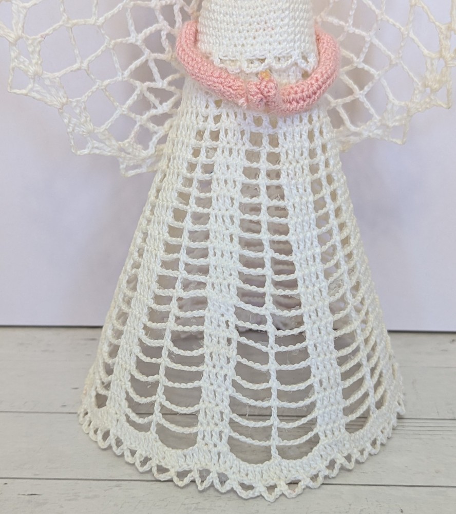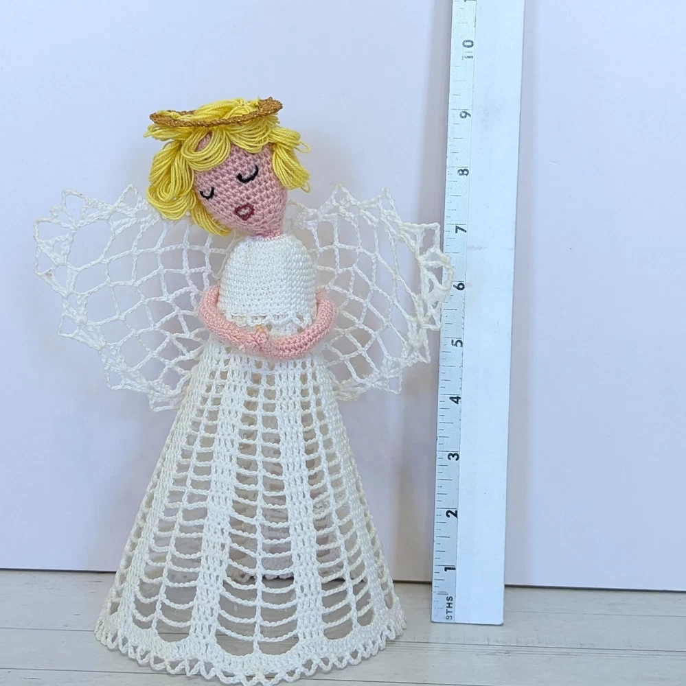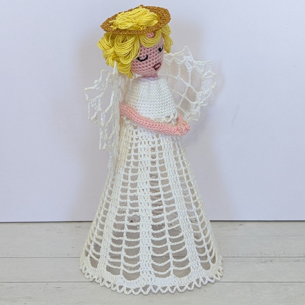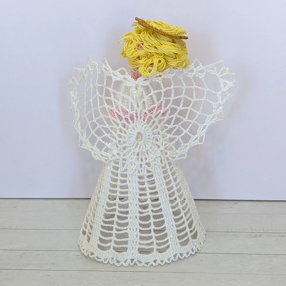 Time Period Manufactured: 1980-1989 Character: Angel Franchise: Halo Number of Items: 1 Features: Embellished, Handmade, Vintage, starched, stiffened, ornament, table decor, nativity angel Subject: Angel Tree Size: Medium Country of Origin: United States Set Includes: Ornament Handmade: Yes Original/Licensed Reproduction: Original Theme: Christmas Pattern: Lace Year Manufactured: 1980 Recipient: Family Color: White Department: Adult Material: Lace Brand: Handmade Shape: Angel Tree Topper Occasion: Christmas Type: Angel