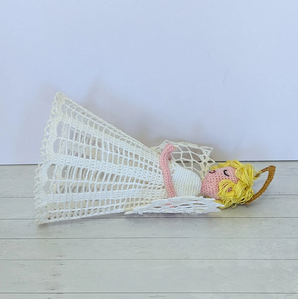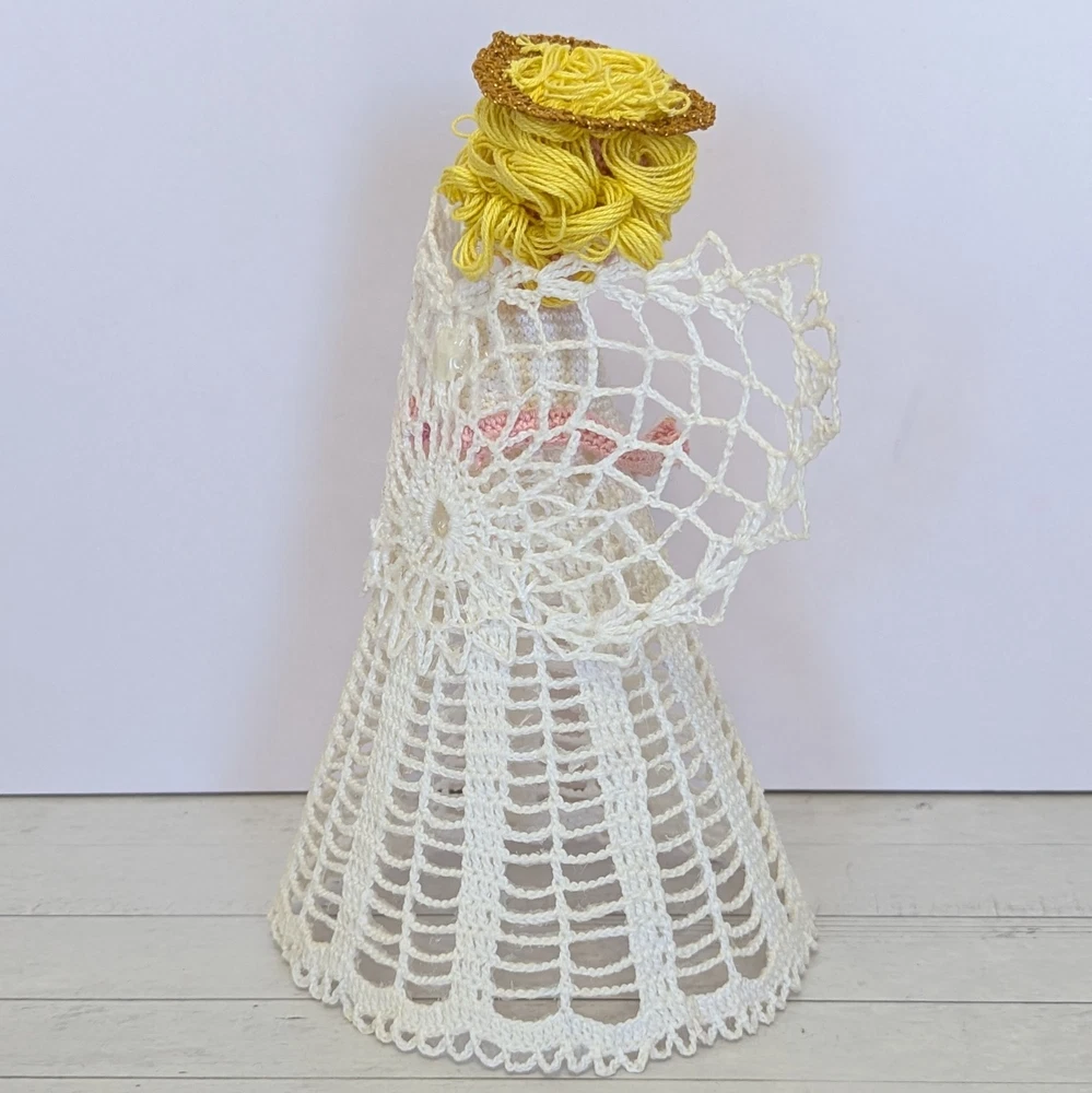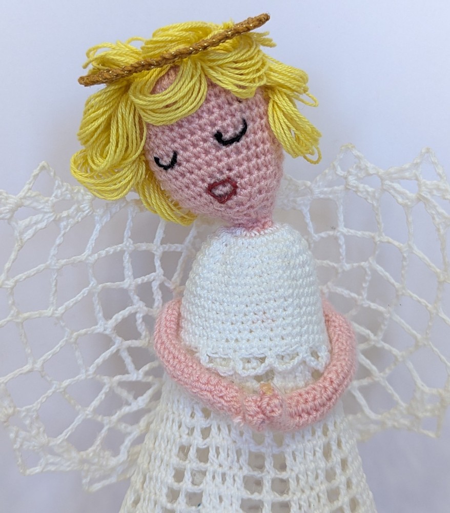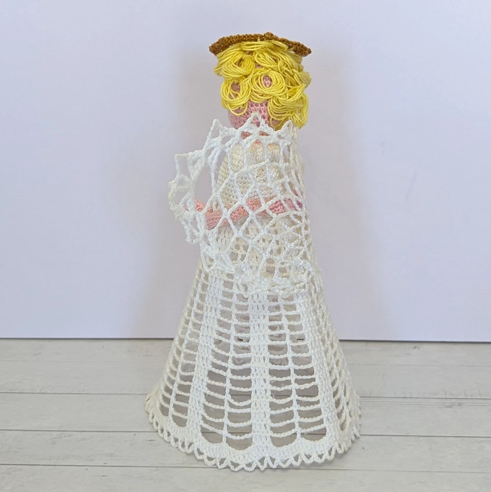 Time Period Manufactured: 1980-1989 Character: Angel Franchise: Halo Number of Items: 1 Features: Embellished, Handmade, Vintage, starched, stiffened, ornament, table decor, nativity angel Subject: Angel Tree Size: Medium Country of Origin: United States Set Includes: Ornament Handmade: Yes Original/Licensed Reproduction: Original Theme: Christmas Pattern: Lace Year Manufactured: 1980 Recipient: Family Color: White Department: Adult Material: Lace Brand: Handmade Shape: Angel Tree Topper Occasion: Christmas Type: Angel