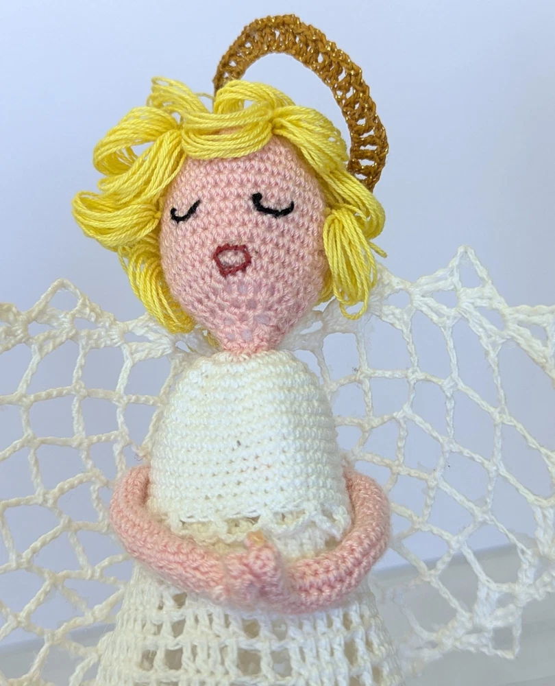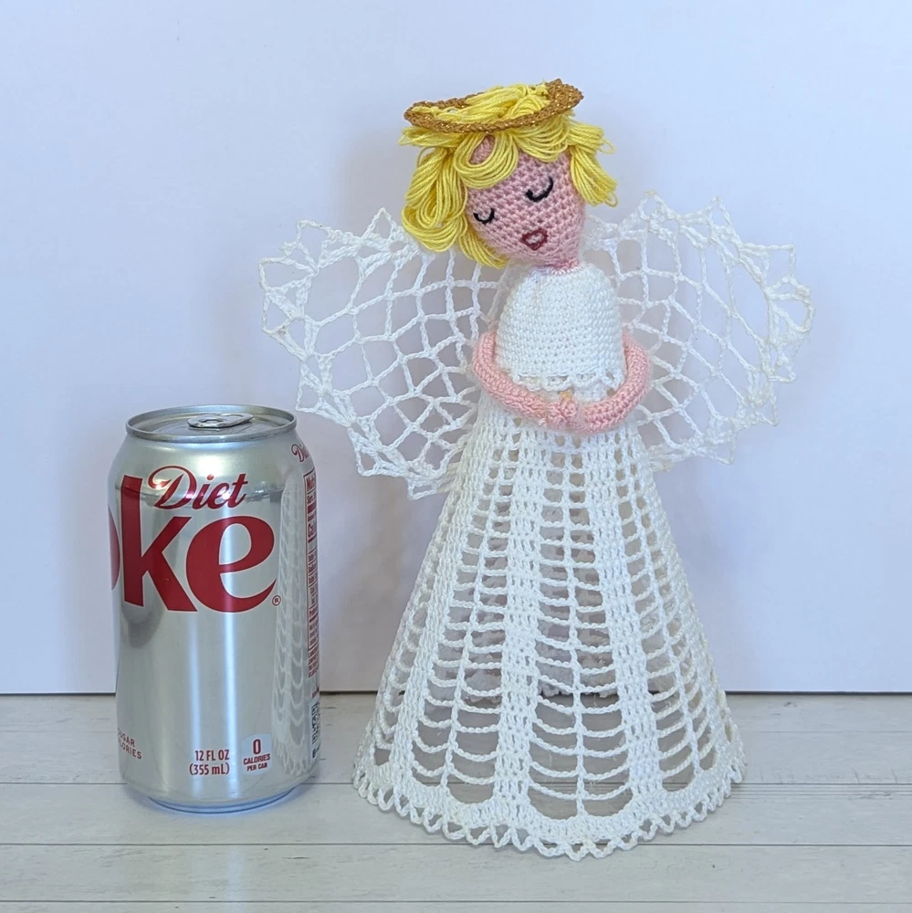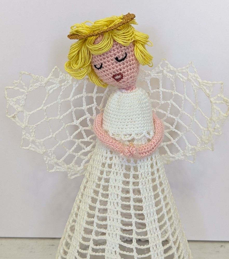 Vtg Crocheted White Lace Handmade Angel Christmas Tree Topper Halo Praying Hands ** Lovely handmade starched crocheted lace Angel tree topper. A darling addition to any Christmas decor. Measures approx 9.5" tall. **Good Vintage Condition! **SEE PHOTOS! Shipped quickly and carefully from Kansas! From a pet-free & smoke-free home. Thank you for looking 😊 -----------------------