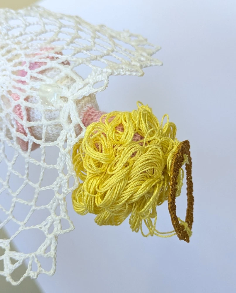 Vtg Crocheted White Lace Handmade Angel Christmas Tree Topper Halo Praying Hands