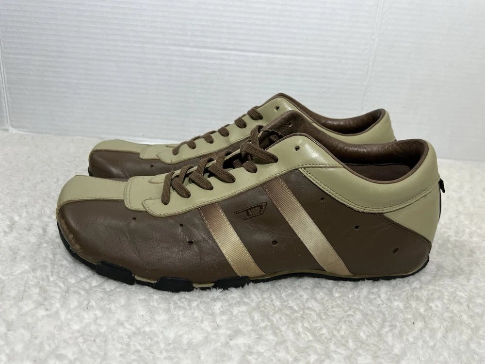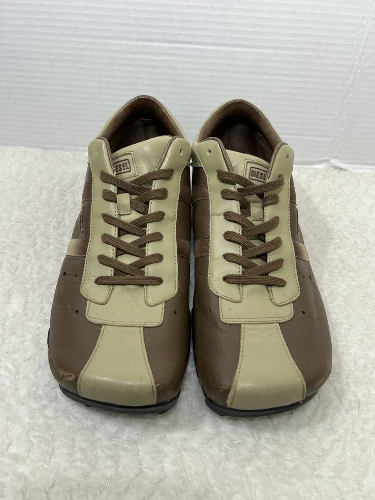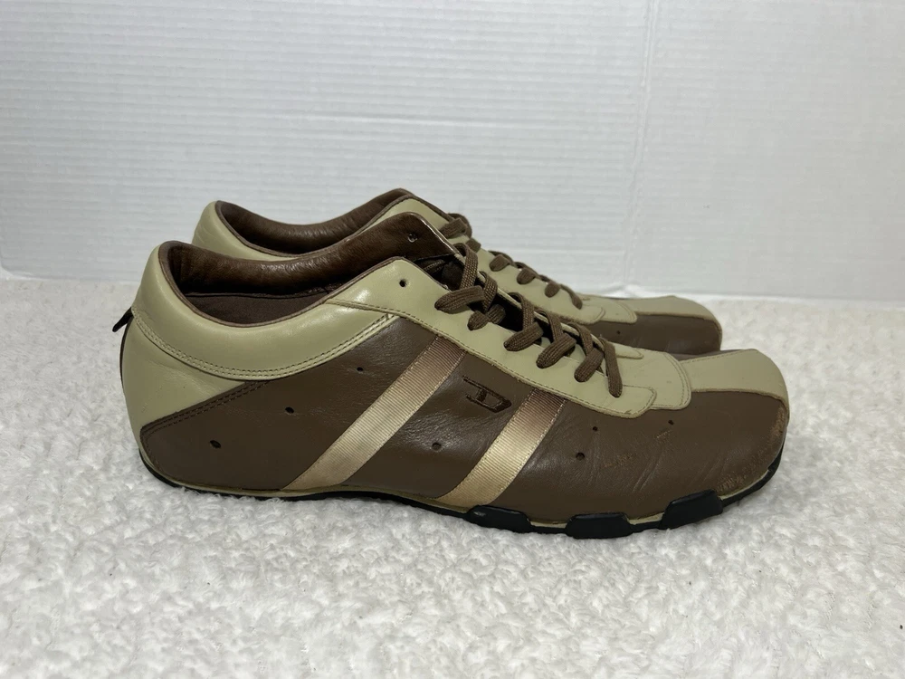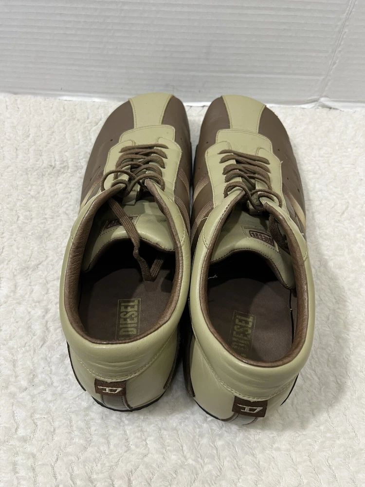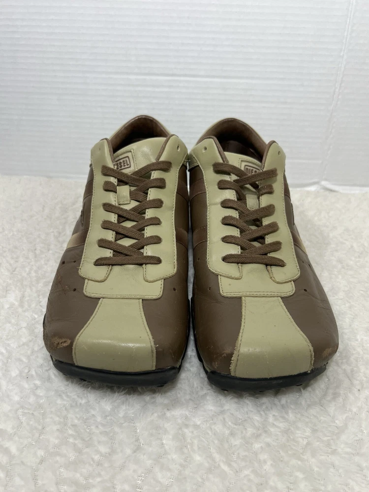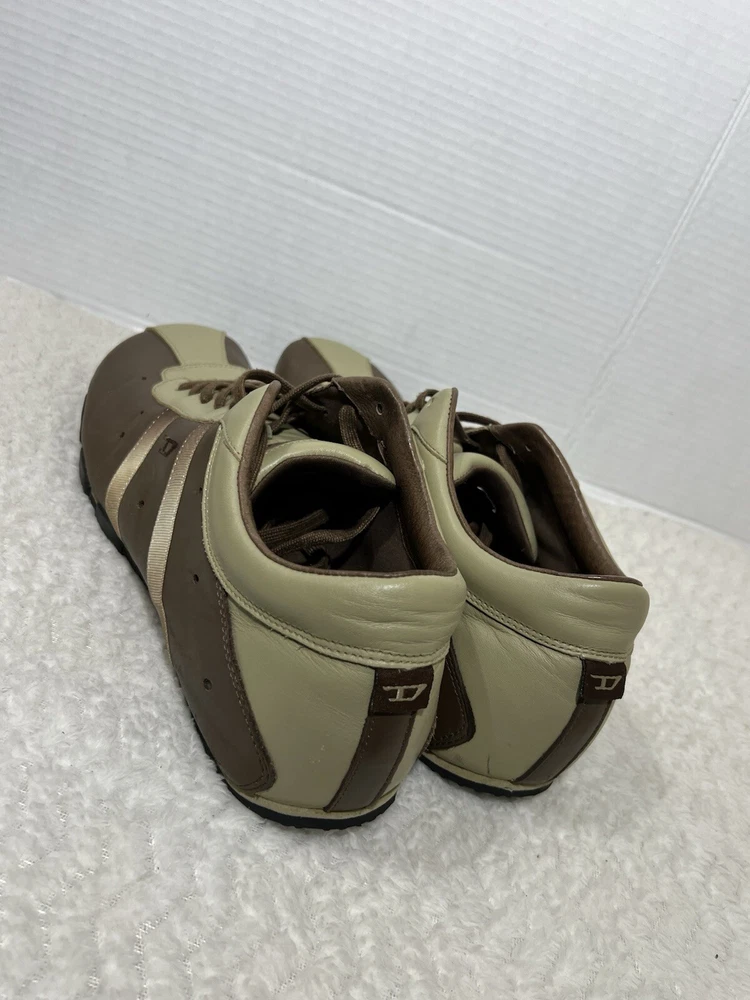 Vtg Diesel Evelyn Men’s 12 Cream Brown Leather Lace Trendy Square Toe Sneaker. Sneaker is in used condition and has signs of wear. Sneaker has some scratches on the front but sneaker is still in great condition. Upper leather is in great condition and clean , inside is clean and the soles are in great condition. Nice comfortable sneaker for casual wear. Condition is pre-owned. Shipped with usps priority mail. Sold as pictures. Thank you! Feel free to message me for any questions. Thank you