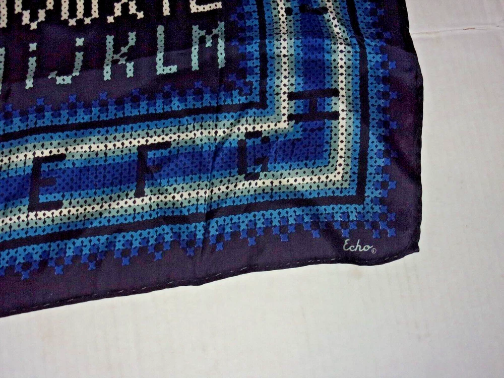DESCRIPTION Vtg Echo alphabet pattern silk scarf pre-owned