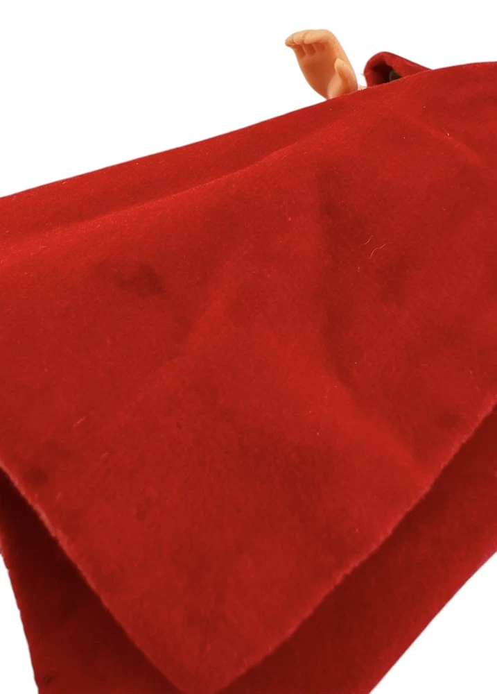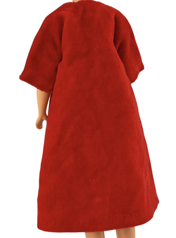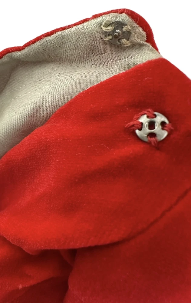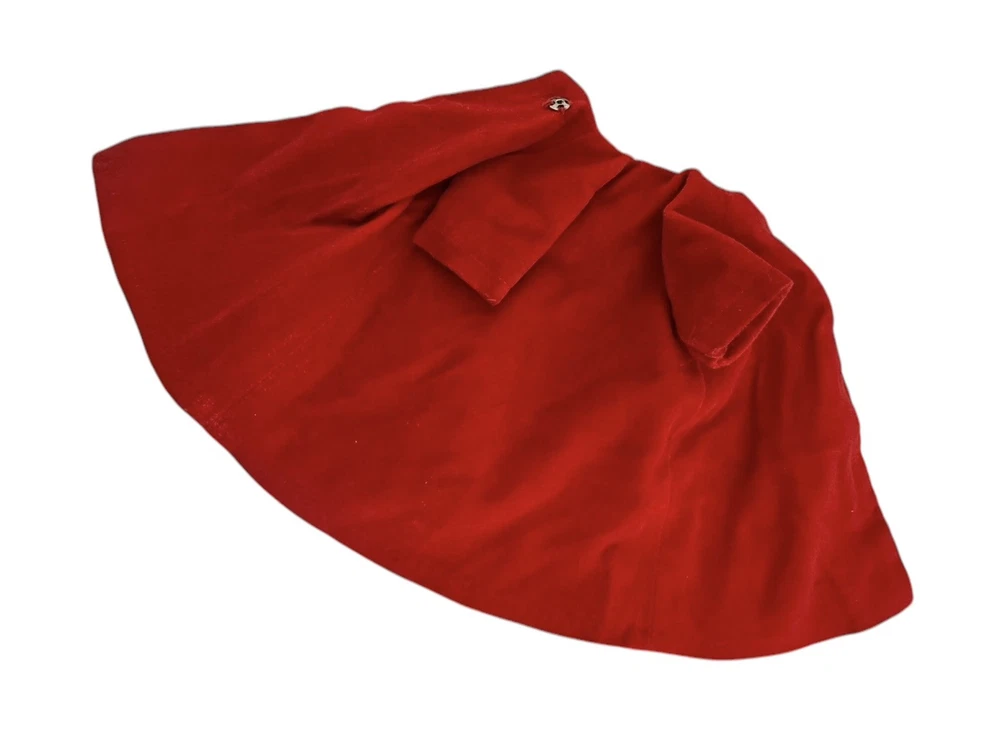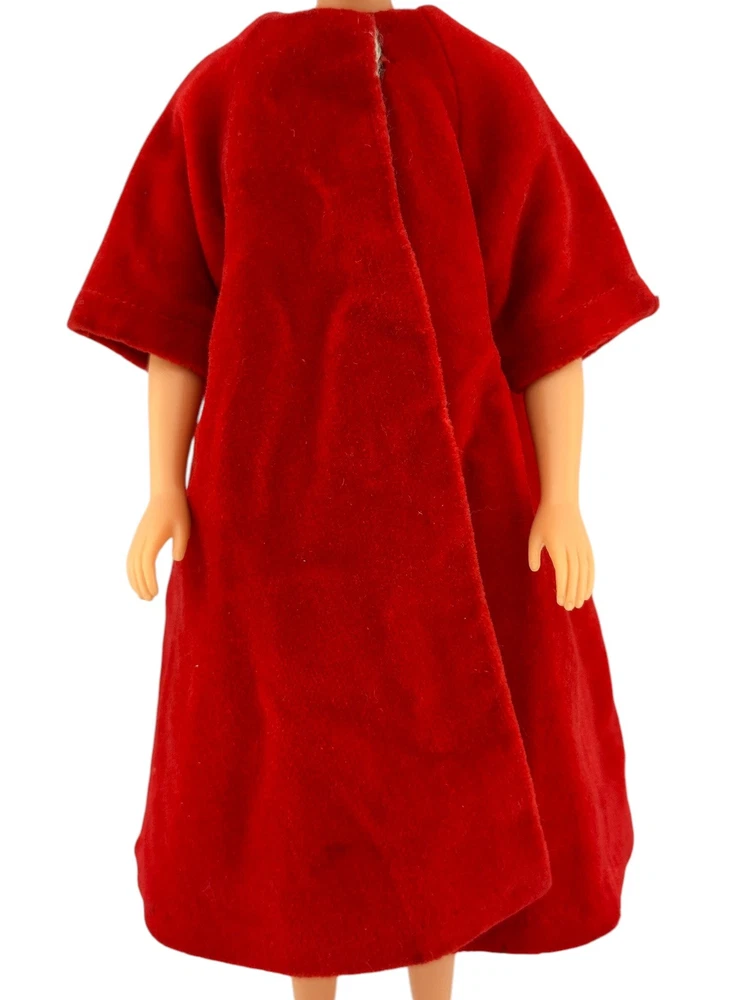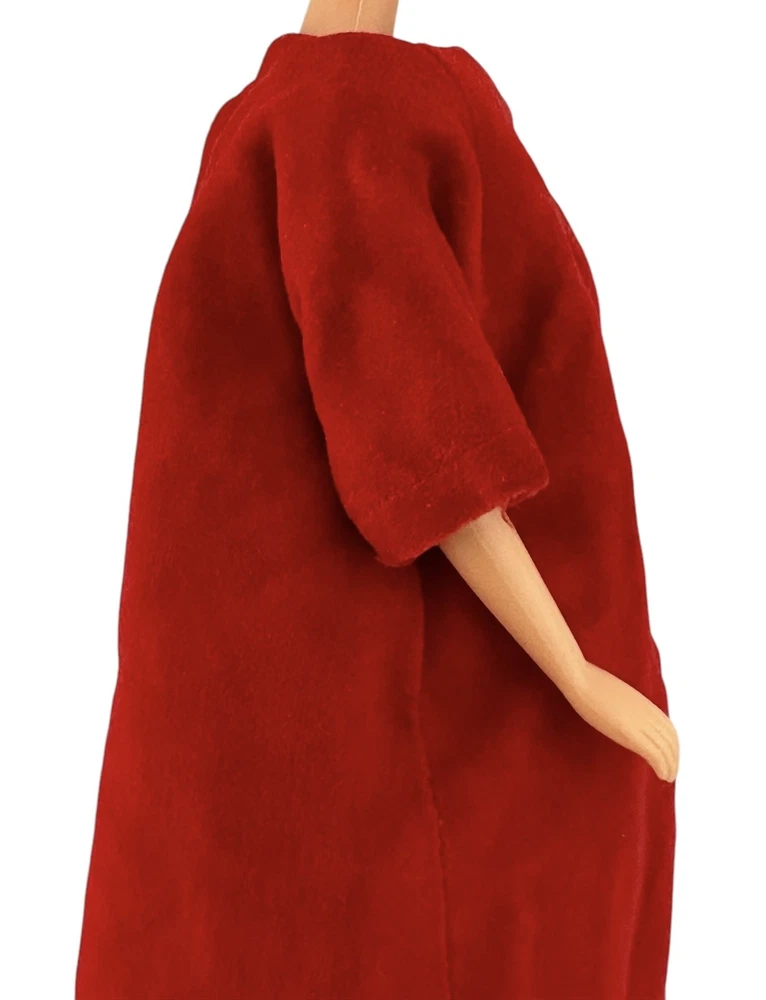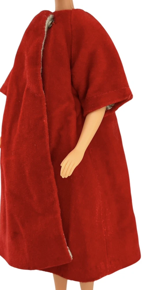 Vtg Fashion Doll Red Velvet Flare Coat Cloak Wrap Wide Sleeves Silky Lining Snap An area of pilled or scratched velvet. A dark stain. Metal snap. See pics.
