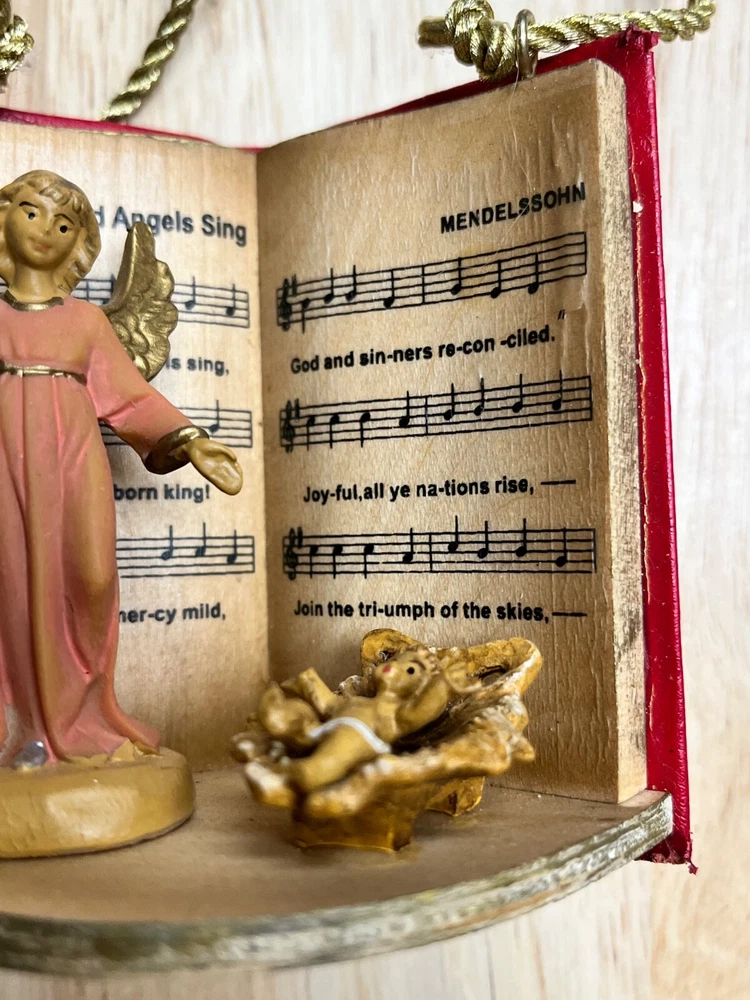 Celebrate the holiday season with this beautiful Fontanini angel and baby Jesus manger songbook ornament. Made in China in 2004, this small and colorful ornament is perfect for adding a touch of angelic charm to your Christmas tree. The ornament features intricate details and is made by the renowned brand Fontanini, ensuring its quality and durability. Whether you're a collector of angel ornaments or simply looking for a unique Christmas decoration, this piece is sure to bring joy and wonder to your home. With its multicolor design and angelic theme, it's a wonderful addition to any holiday decor. Add this stunning Fontanini angel and baby Jesus manger songbook ornament to your collection today!