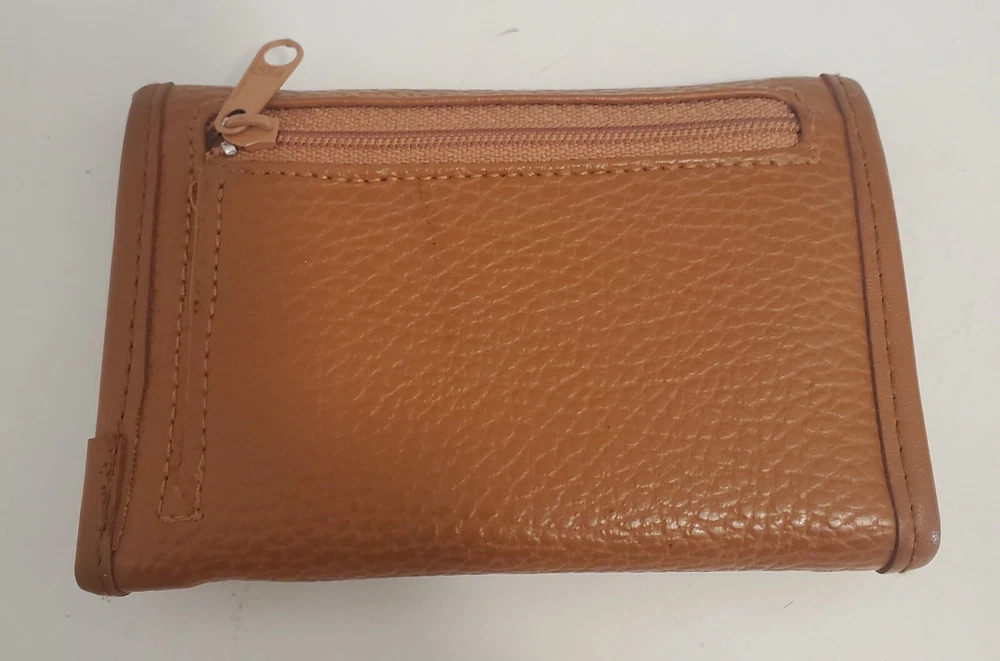 HomeVtg Gloria Vanderbilt Woman's Brown Wallet 3x5" Tri Fold Zippered Compartment
