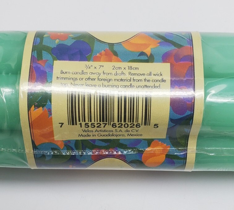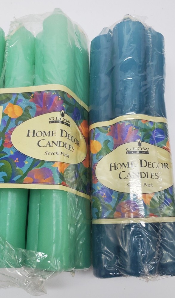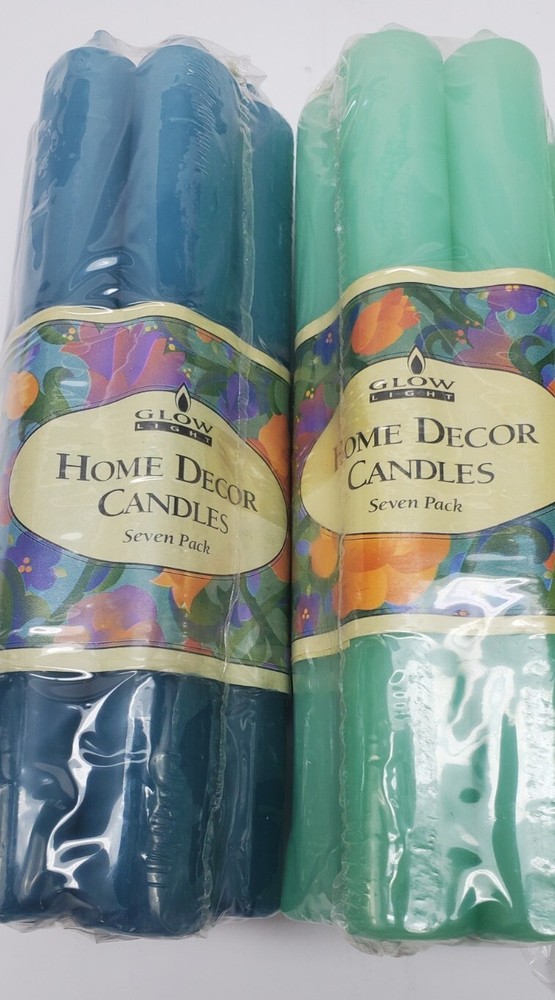 2 packs of blue (2 candles dented), 2 packs of green Add a touch of classic elegance to any room with this set of 7 Glow Light taper candles. The candles are round in shape, with a size of 7 inches in length and a diameter of 3/4 inches. They come in two shades of blue and five shades of green, making them a perfect addition to any home decor. These candles are perfect for creating a warm and inviting atmosphere in any room. Their traditional style and decorative features make them ideal for use in any room of the house. With no additional parts required, they are easy to use and offer long-lasting burn time.
