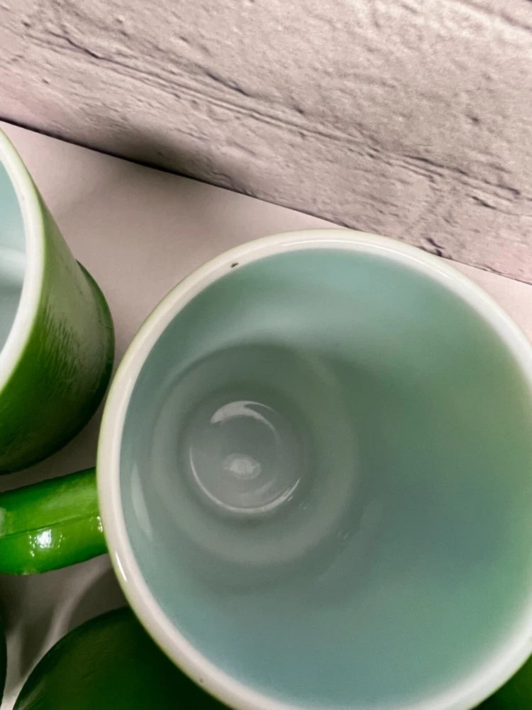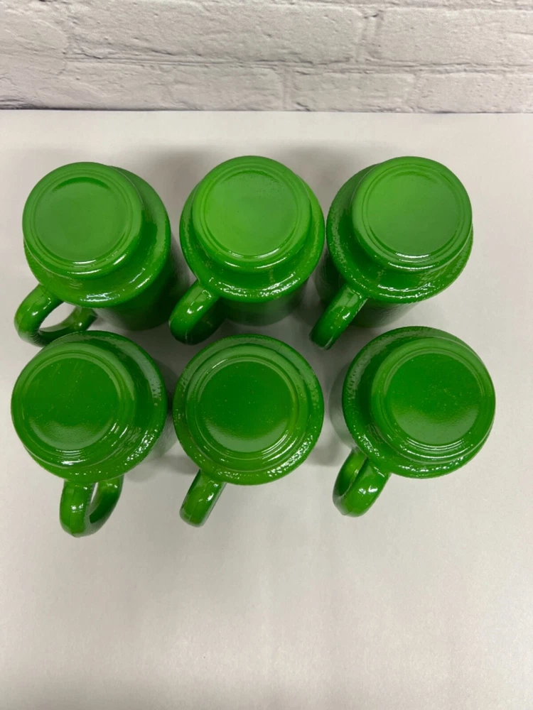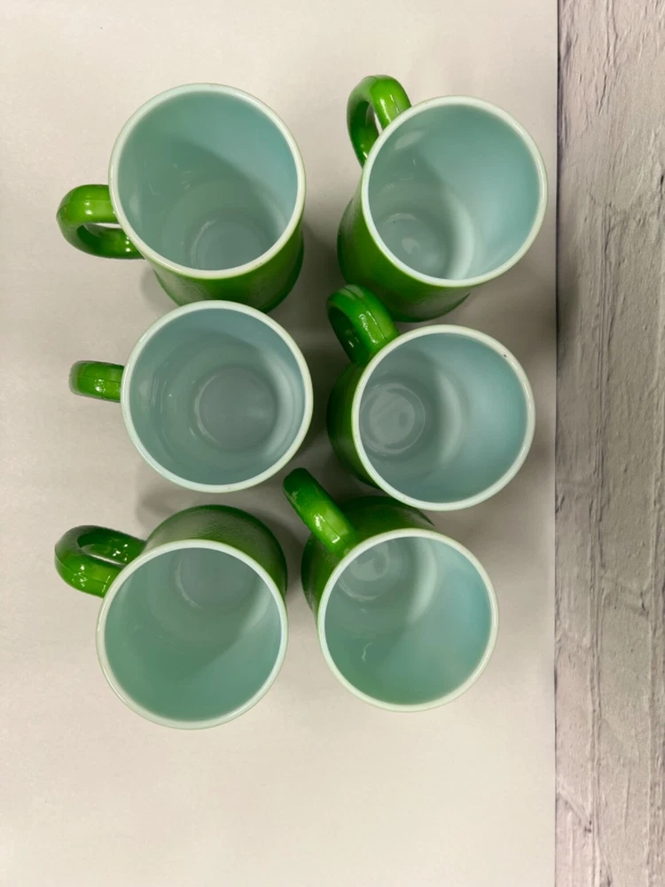 Vtg Green Milk Glass Mugs Coffee Tea Cup Set of Six(6)