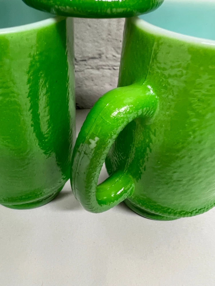 gtin13: Does not apply Vintage: Yes Style: Mid-Century Modern UPC: Does not apply Type of Glass: Milk Glass Brand: Unbranded Material: Glass Original/Reproduction: Vintage Original Type: Mug Capacity: 10oz Product Line: Oven Ware Color: Green