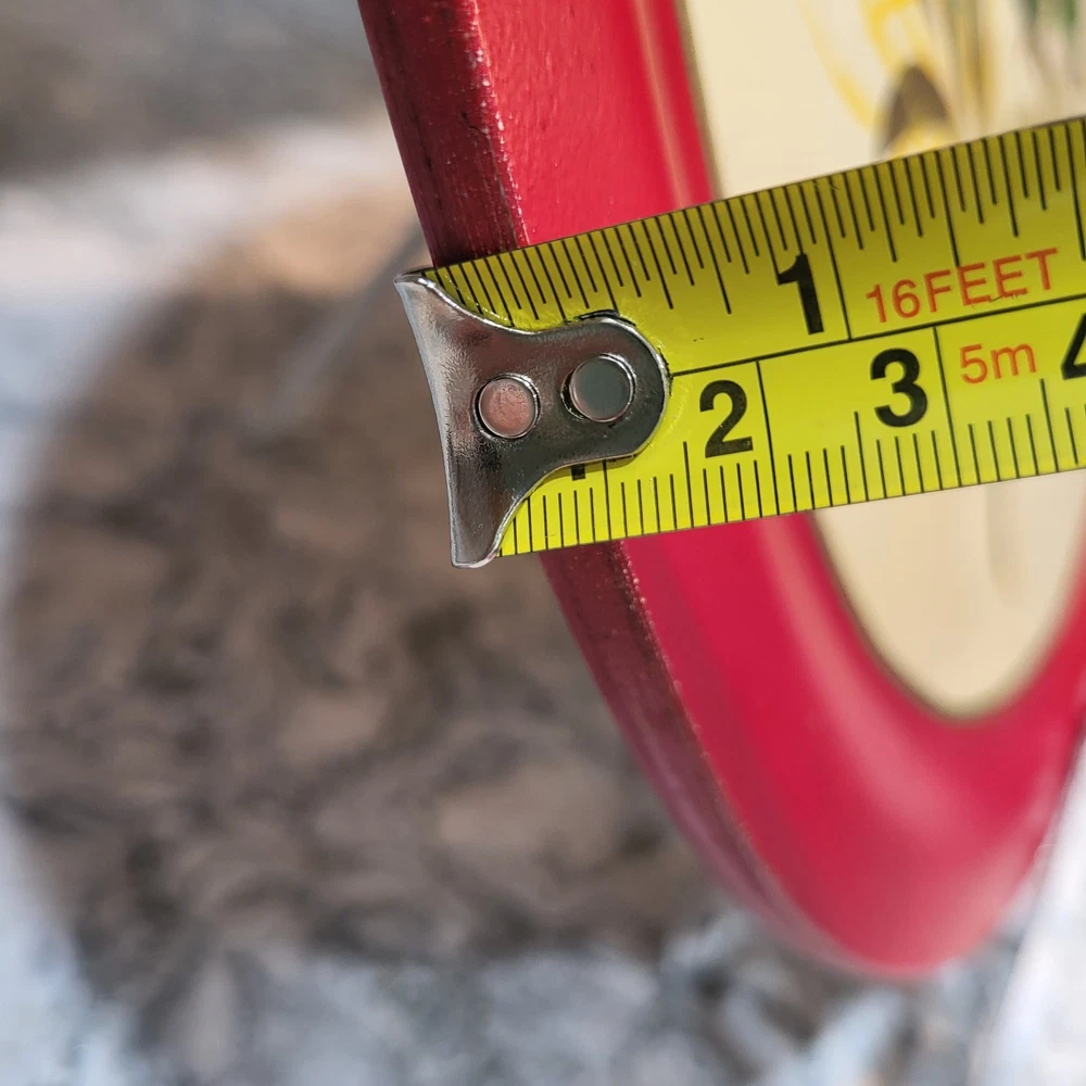 This vintage hand-painted 16" folk art wooden plate from Vermont features a colorful rooster design, perfect for adding a touch of country farmhouse charm to any space. The round plate is made of wood and showcases a multicolor bird theme, making it a unique and handmade decorative collector's item. With its folk art production style and United States origin, this plate is a stylish and eclectic addition to any home.