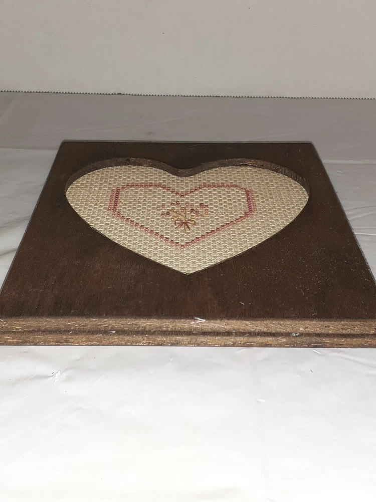 Vtg Handmade Rustic Wood Heart Frame Cross Stitch Heart. Condition is Used. Charmingly imperfect! Cross stitch framing is a little left of center and hanger is not mounted straight on back. Still a lovely gem!