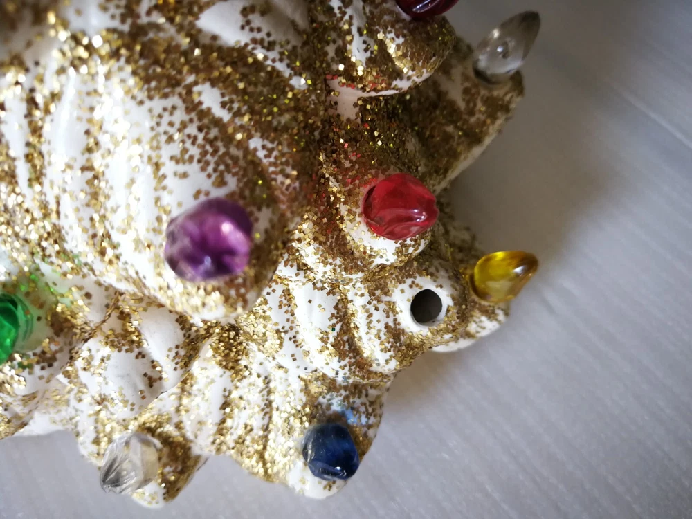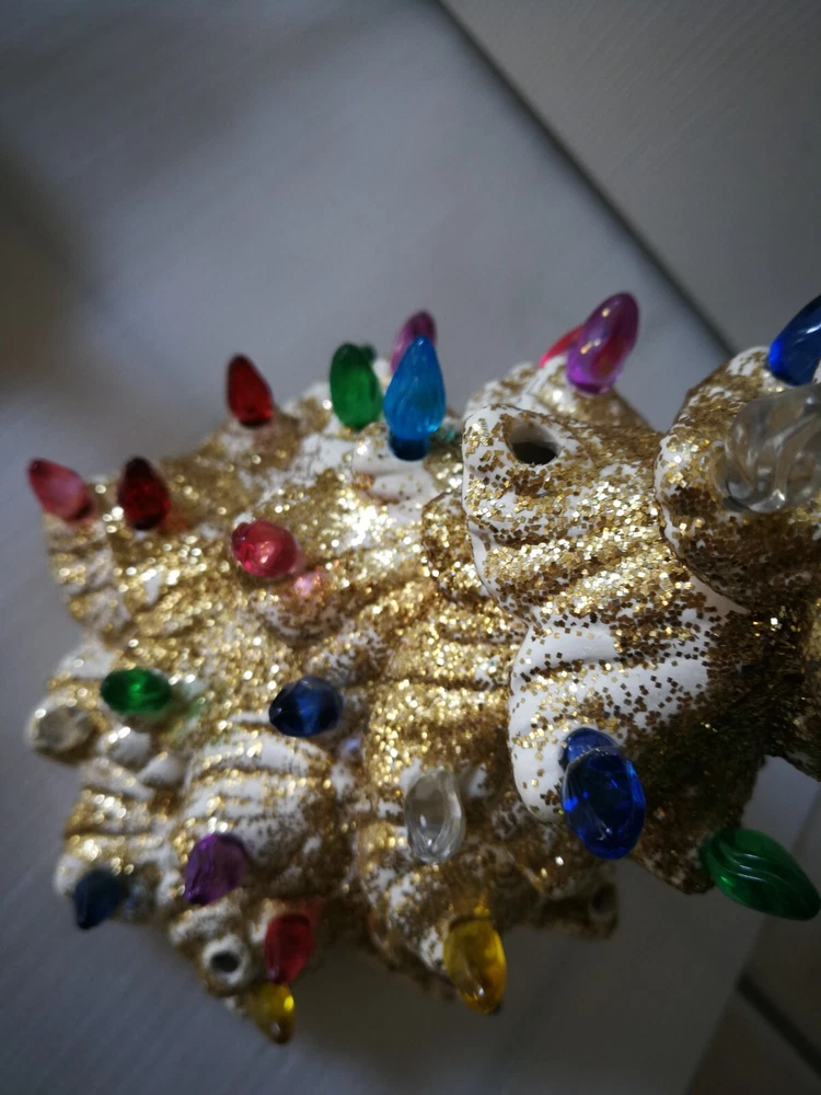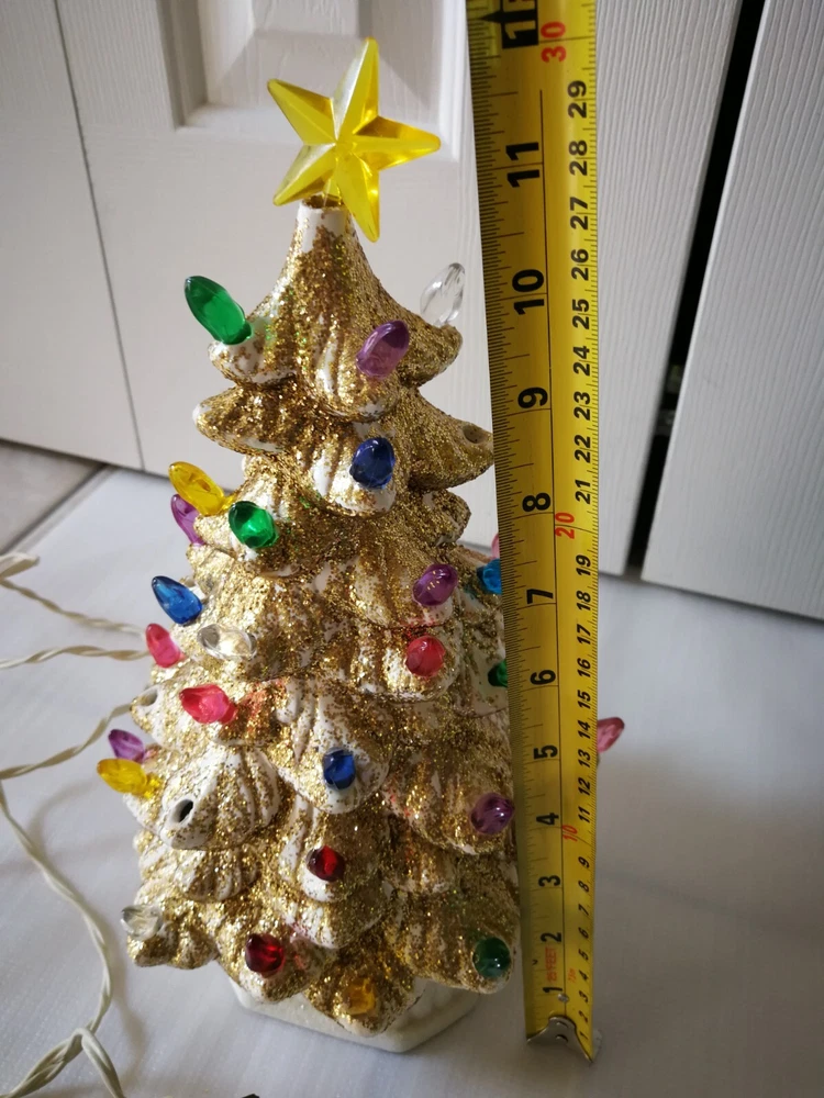 Vtg Holland Mold 11.5" White Ceramic Gold glitter Light Up Christmas Tree