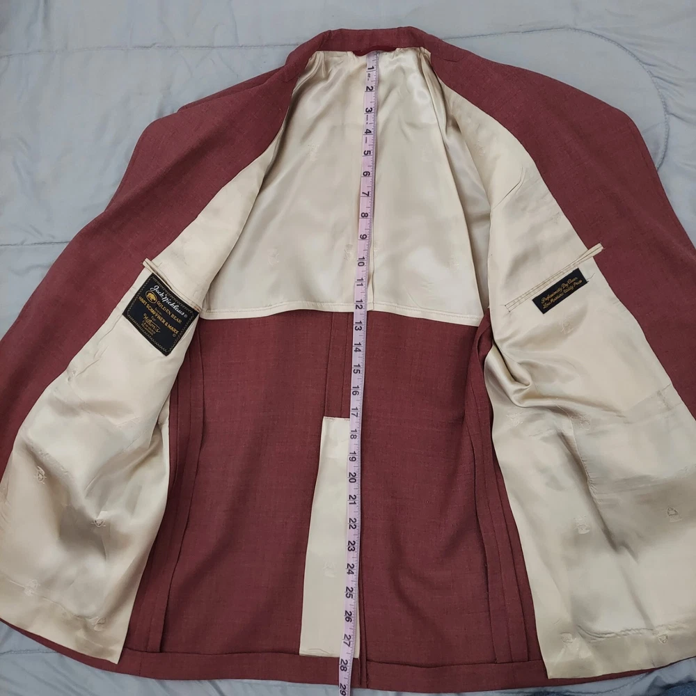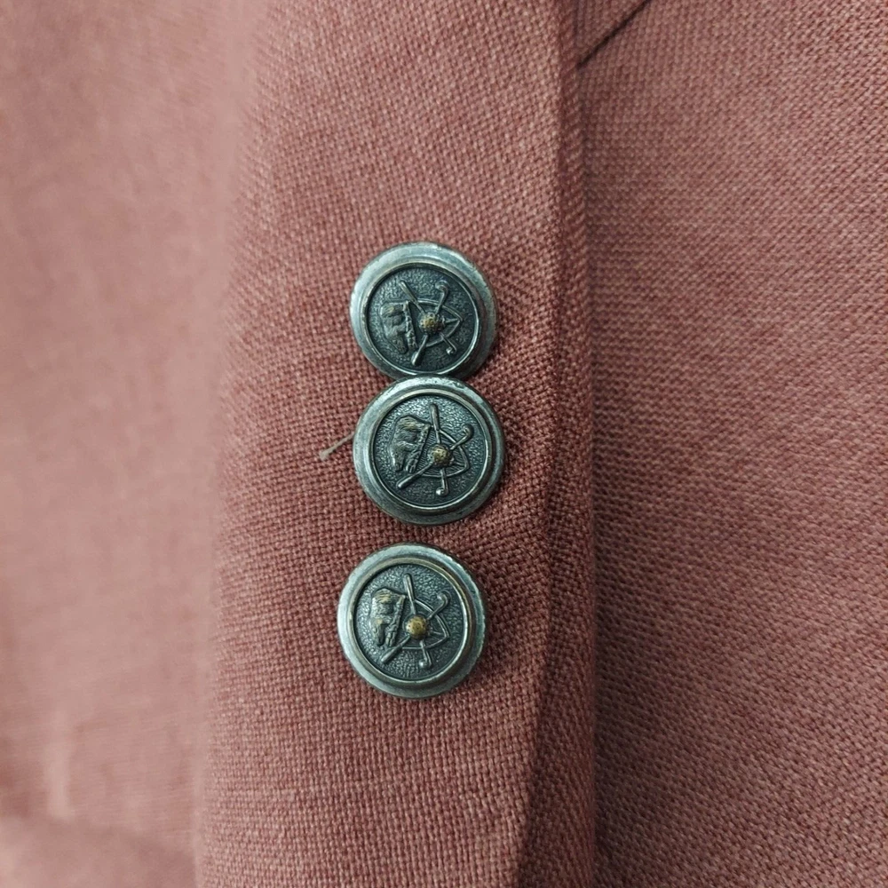 This vintage Hart Schaffner Marx sport coat featuring the iconic Jack Nicklaus Golden Bear label was made for Wilson’s CG (Country Club) of Course, Delaware . A classic piece of American tailoring, perfect for collectors, golf enthusiasts, or anyone who appreciates timeless menswear. The jacket is well-constructed with a rich brick red / chestnut tone , offering a polished yet distinctive vintage look suitable for dress or smart-casual wear. Condition: Excellent used vintage condition ✔ No visible holes, rips, stains, or defects Please see all photos for full condition details. Details: • Brand: Hart Schaffner Marx • Label: Jack Nicklaus Golden Bear • Made for: Wilson’s CG of Course, Delaware • Tag Size: Missing (see measurements below) • Color: Brick Red / Chestnut / Red • Care: Dry Clean Only Flat Measurements (Approximate): • Pit to Pit: 21" • Waist: 19.5" • Length: 29" • Sleeve: 23" 📏 Please compare measurements to a similar garment for best fit. Notes: Vintage sizing may differ from modern sizing. Colors may vary slightly due to lighting and screen settings. Questions are welcome—please ask prior to purchase. TMensBin