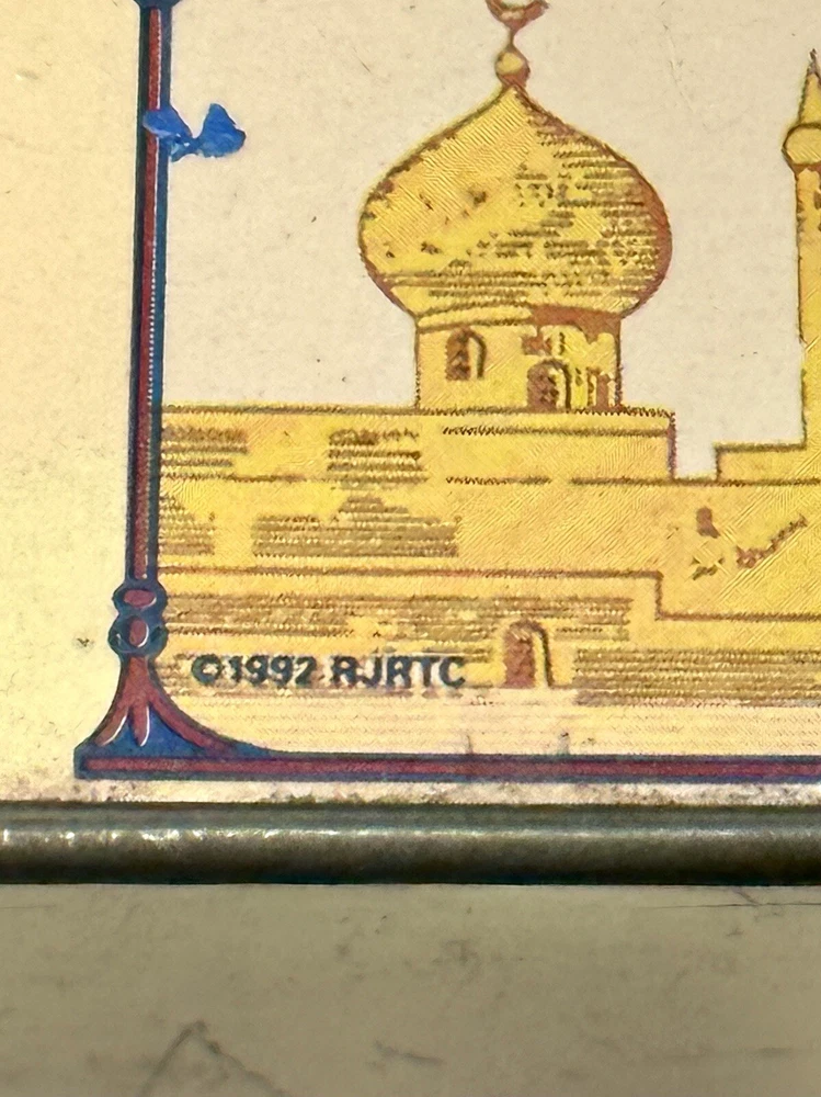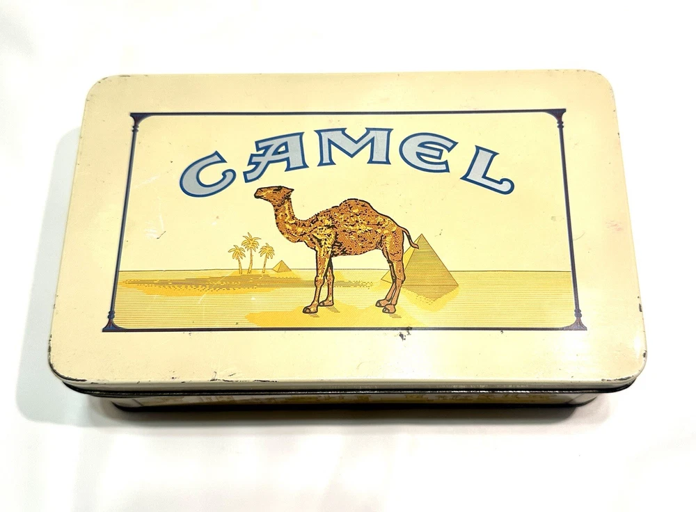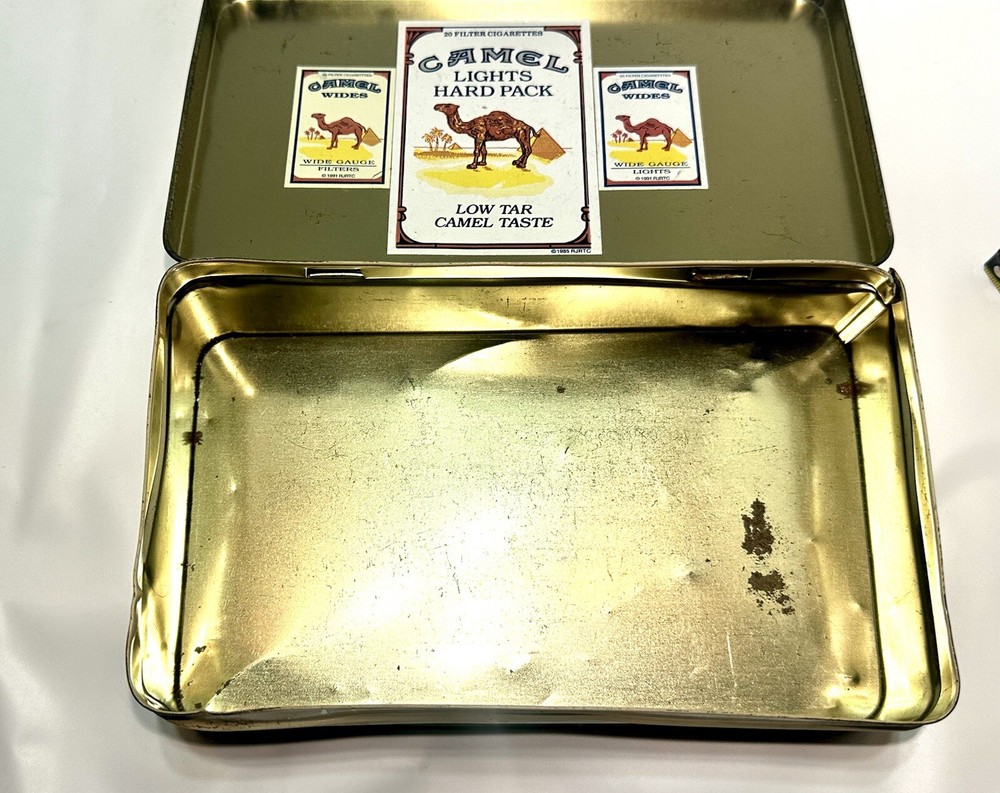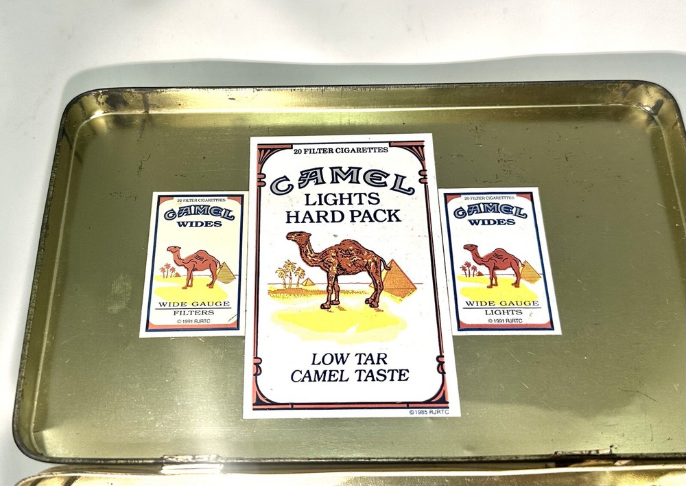 Vintage Camel Tobacco tin hinged rectangular can with stickers on inside dated 1991 and 1995. Can is in used condition with some flaws. Tin Can itself is dated 1992. RJRTC Measurements in Photos. Cross listed. Ships quick we care.
