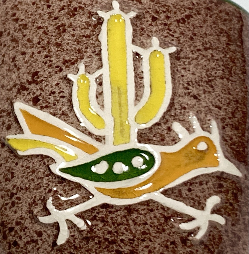 ~ Vtg LEGENDWARE Sedona Arizona Oak Creek Kilns Pottery ROADRUNNER Cactus Mug Cup 12oz ~ Nice, clean and shiny. No breaks. Has a Hairline and chip, please see photos. Crazing throughout. Holds: 12 ounces Measures Approx.: 3 1/2" tall 3 3/4" top diameter ~ Please see all photos for details as they are part of the description, use Zoom and ask questions before bidding ~ Returns as per eBay Policy, " If a buyer needs to return an item, it must be returned in the same condition in which it was received, and it must include all items that were in the original package. " Feel free to email us with any concerns or questions through the "Ask Seller A Question" option. Thank you for considering us in your shopping. ~~ Please check out our other items in our eBay store, you will never know what you will find! ~~
