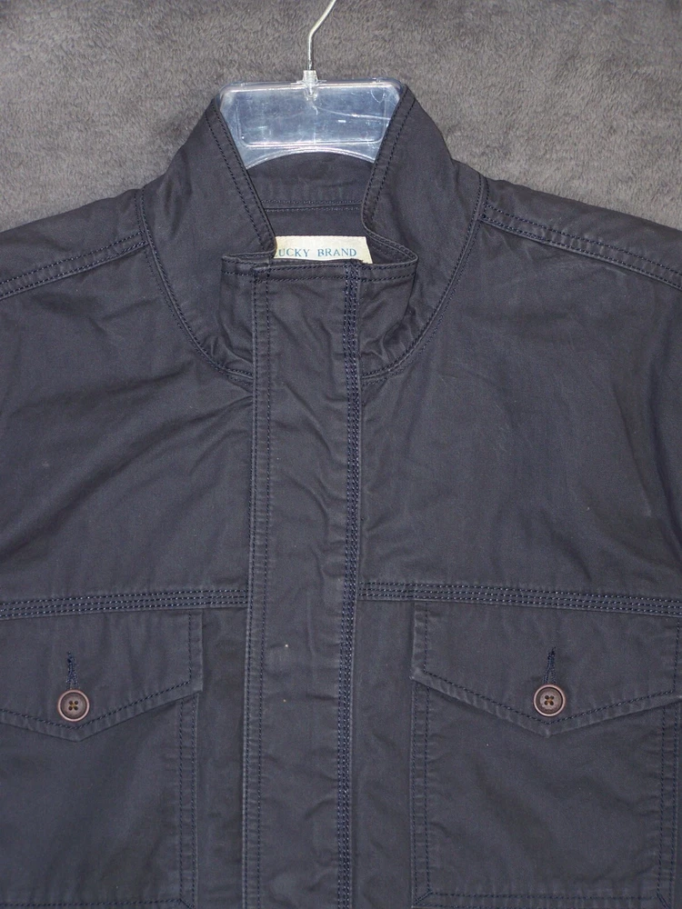 MENS CLOTHING DEPT Up for sale is a Vtg LUCKY BRAND Jacket Adult Extra Large Black Cotton Snap Front Outdoor Men's Size: Adult Size Measurements: Please see photos above for all measurements LUCKY BRAND Vintage Jacket Military Style 2 slant Pockets. We offer free returns no questions asked. Thank you I will ship this item out via USPS First Class 2-3 Day Mail with a tracking number for confirmation We can combine shipping on multiple quantity Please email us 9053 Janelle's Unlimited is family owned and has been in business for over 14 years. Customer satisfaction is our first priority. This item is made of quality material. It is guaranteed 100% genuine and authentic. Your purchase is fully protected when you order today. If you are not Satisfied with your item, contact us anytime we will get back to you Within 24 hours Monday through Friday. We have one of the best returns policies on eBay. Our shipping days are Monday through Friday in the morning. Please see our feedback page to reveal how much pride we take in our company.